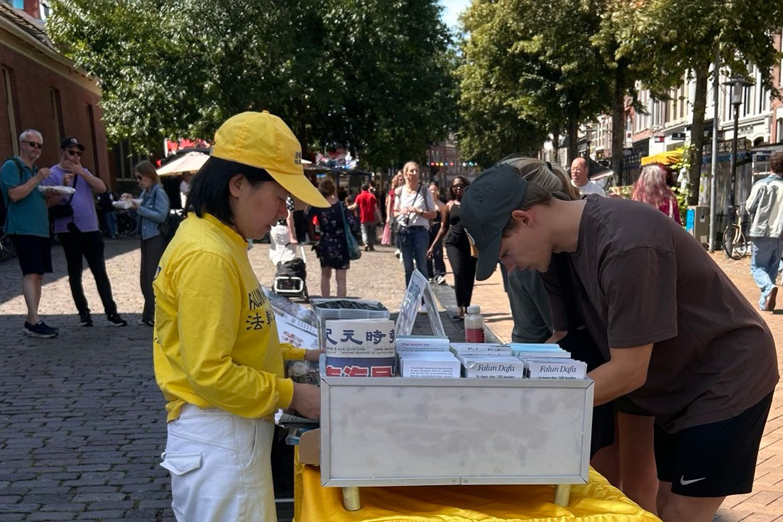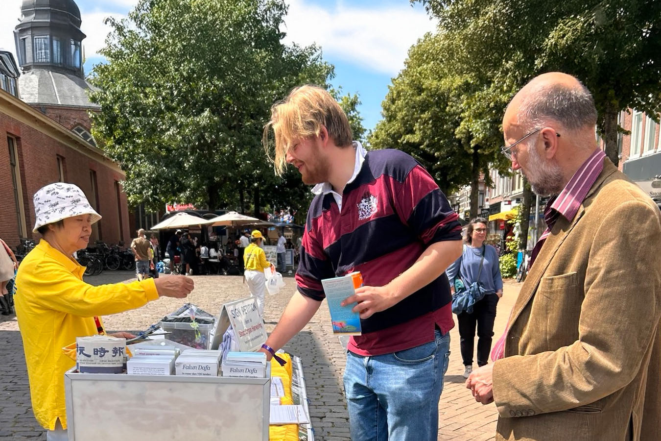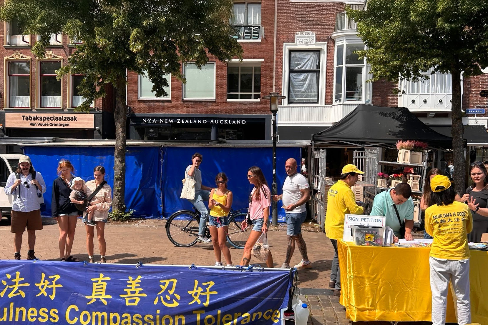 ![]() 图1:二零二五年七月十二日荷兰法轮功学员在格罗宁根市街头布置展板,展示法轮功功法,发放传单,向路人介绍法轮功真相。 |