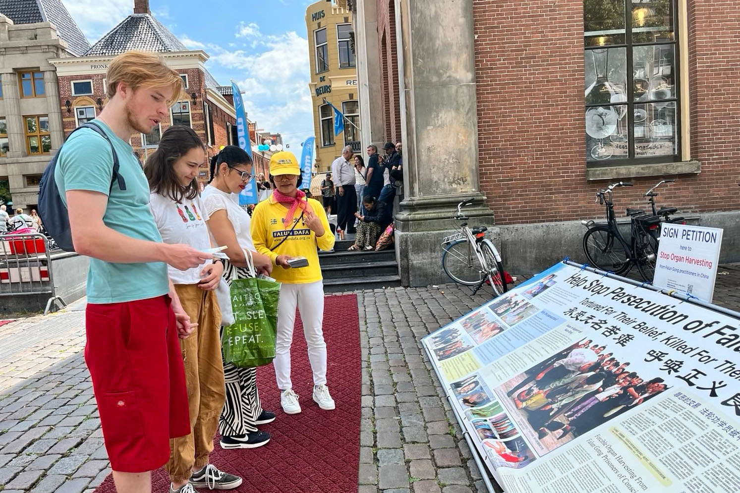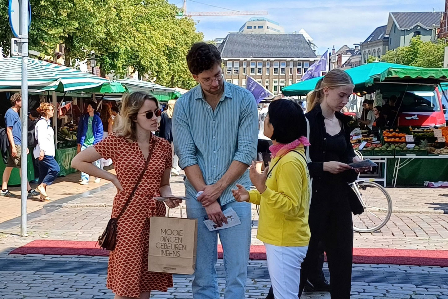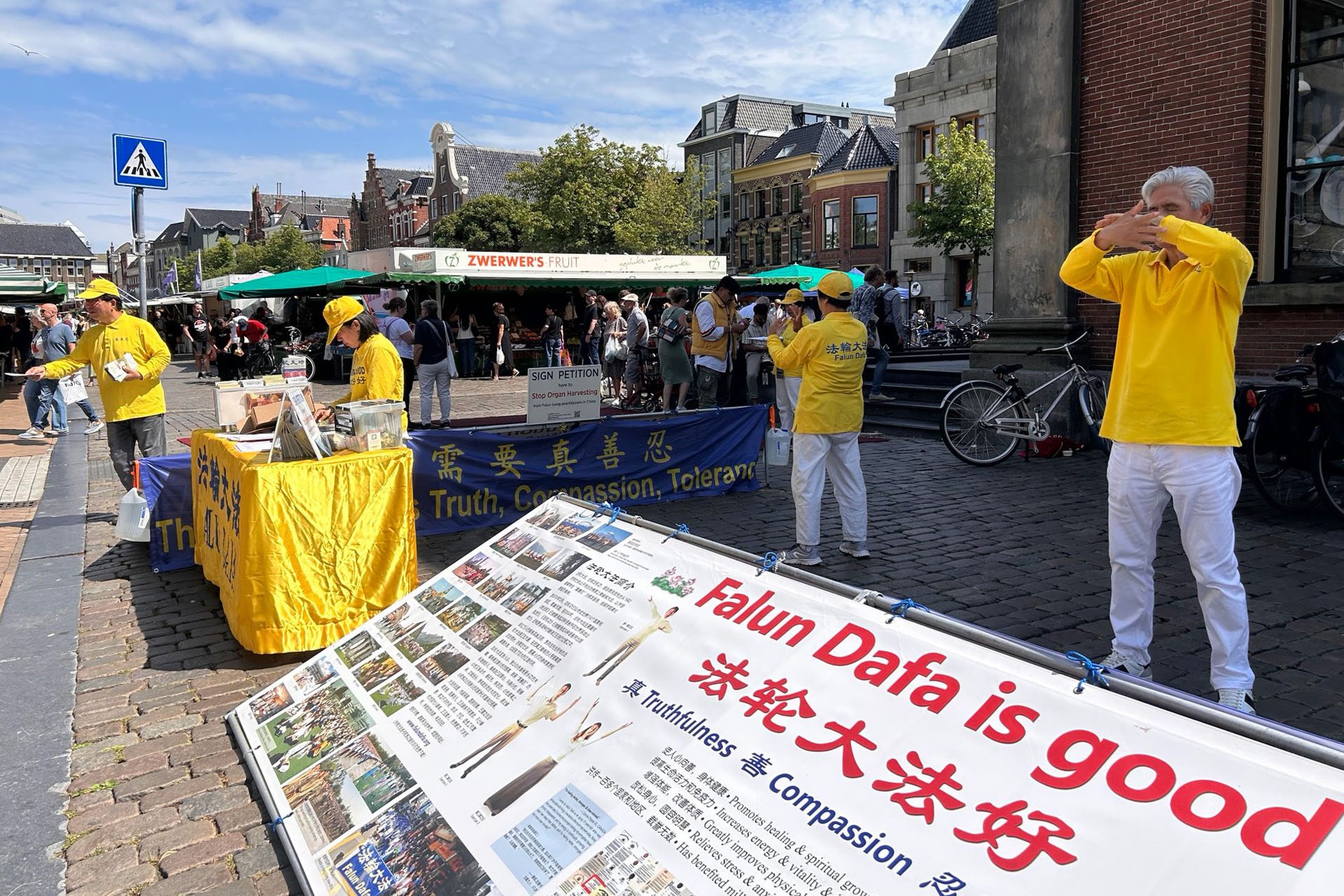 ![]() 图1:二零二五年七月十二日荷兰法轮功学员在格罗宁根市街头布置展板,展示法轮功功法,发放传单,向路人介绍法轮功真相。 |