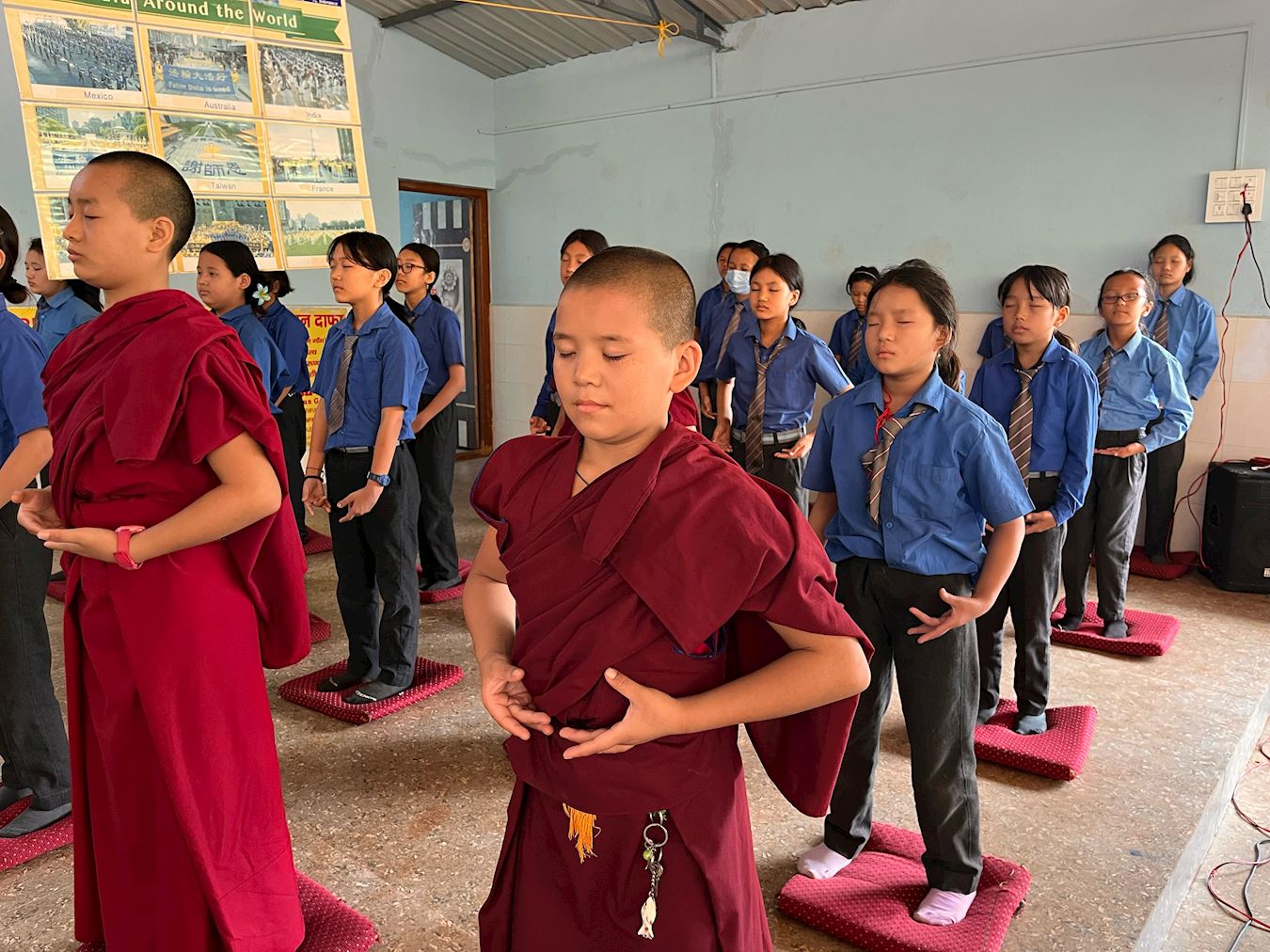 ![]() 图1~5:在印度南部的藏人学校举办了法轮大法介绍会,师生们学炼法轮功 |