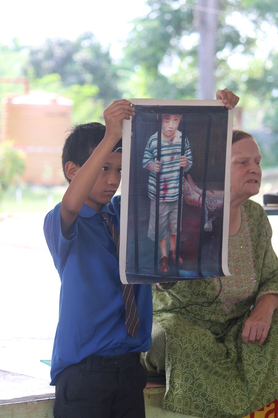 ![]() 图6:师生们观看法轮功真相展板 |