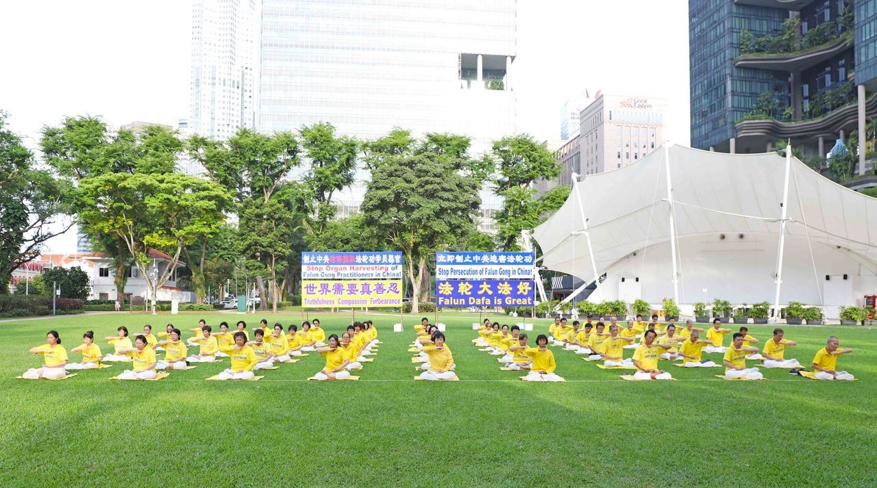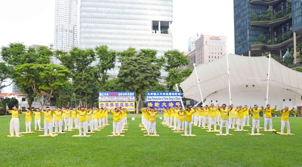 ![]() 图1~2:二零二五年七月十五日,新加坡法轮功学员在芳林公园举办反迫害二十六年活动。图为学员们在集体炼功。 |