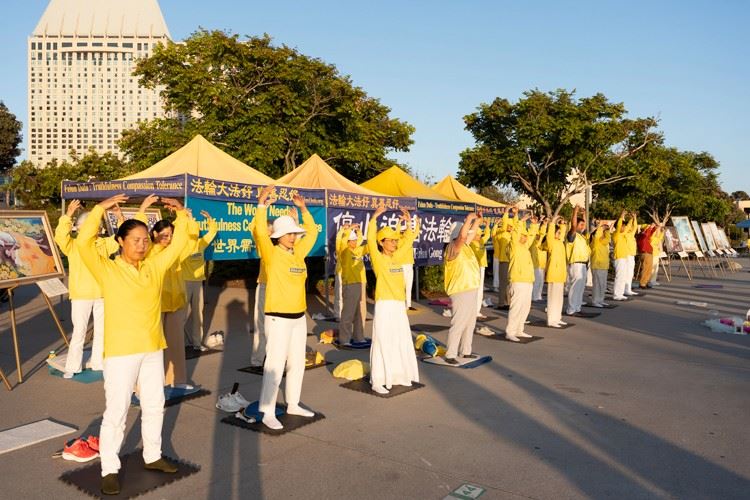 【明慧网二零二五年七月十八日】二零二五年七月十二日,在法轮功学员和平理性反迫害26年之际,美国加州圣地亚哥法轮功学员在当地海湾公园举办真善忍画展和烛光夜悼,并为呼吁美国参议院通过《法轮功保护法案》向民众征签,同时让他们了解并警惕中共正加剧把对法轮功的迫害延伸至美国,当地政要出席并为活动颁发了褒奖。