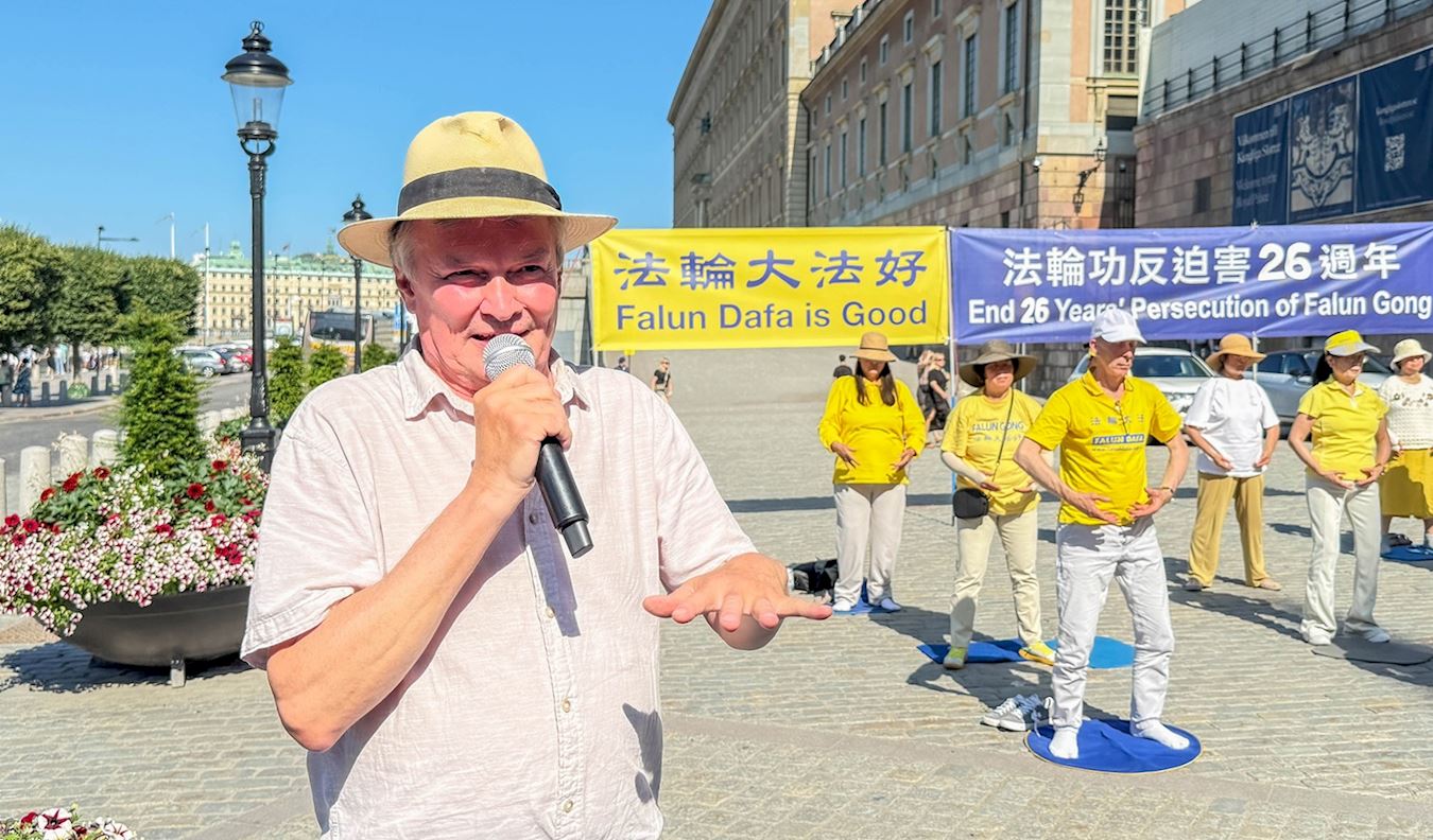 ![]() 图10:西人学员托比约恩用亲身经历揭露中共假、恶、暴的本质,并呼吁瑞典各界谴责并帮助制止中共跨国打压法轮功。 |
