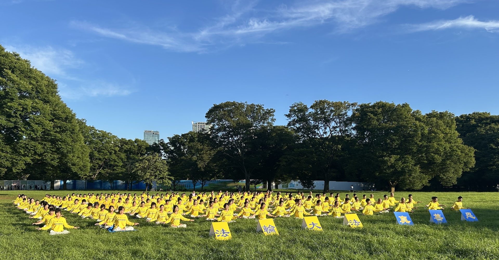 七月二十日下午两点,法轮功学员来到著名的代代木公园大炼功,讲真相。