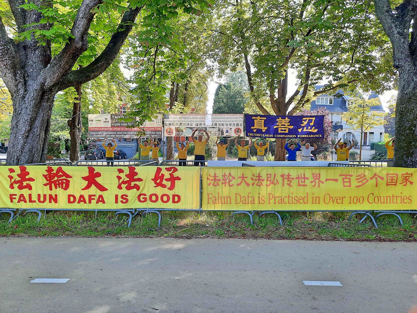 坚持二十六年 比利时法轮功学员中使馆前反迫害