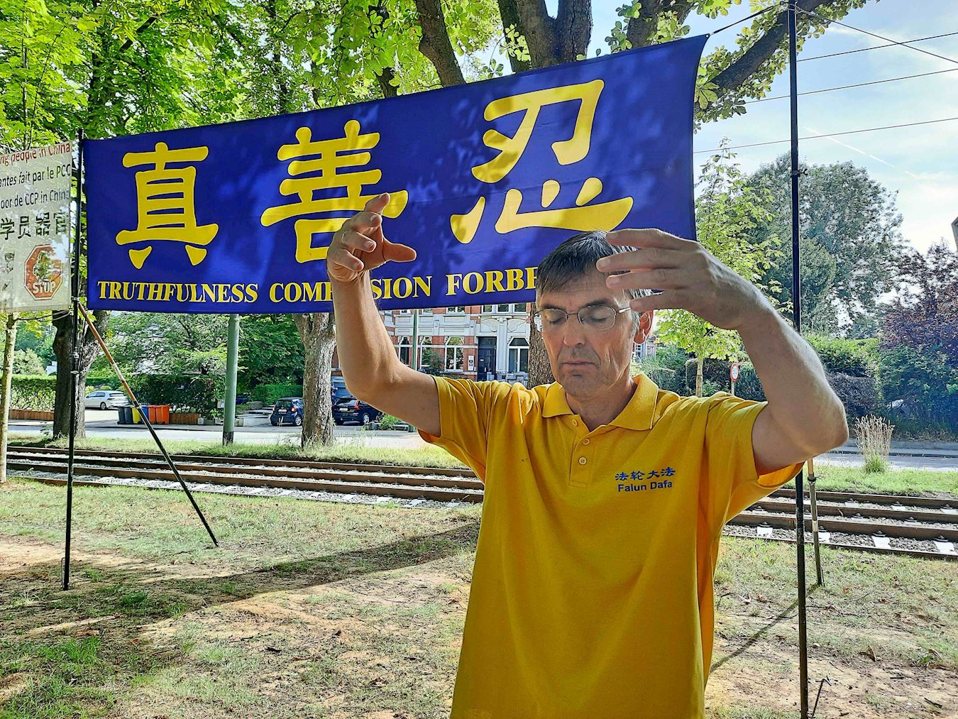 他还分享了一次参与布鲁塞尔活动的经历,“我记得一次我们在布鲁塞尔举办和平讲真相活动时,受中使馆指使的多名青年(看似留学生),打着中共国旗,故意干扰我们的活动,其中一名男子直接坐在我们炼功场地中间,并且不听劝说;带头的女子情绪极度失控,大喊大叫,最后被警方带走。”
