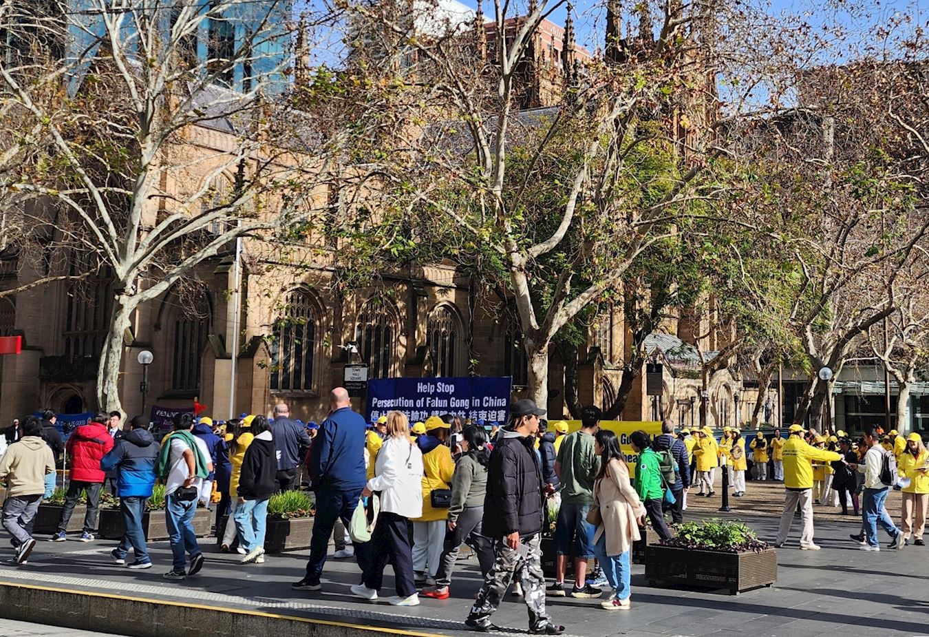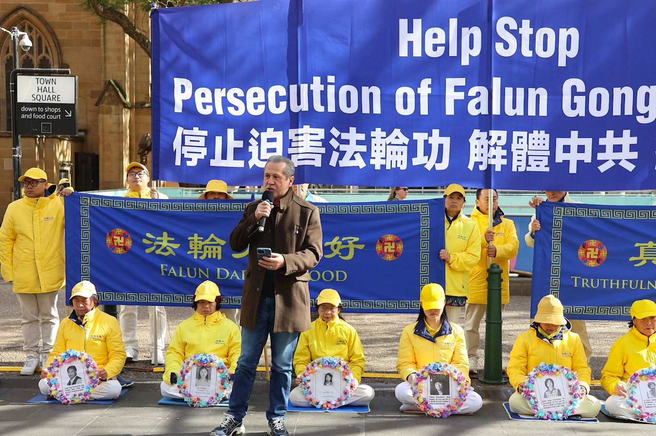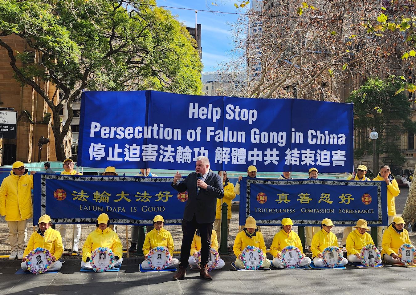 澳大利亚维吾尔协会主席巴赫蒂亚尔·博拉(Bahtiyar Bora)代表该协会向法轮功团体表示声援和最深切的敬意。他说:“今天,当你们聚集在一起进行和平抵抗时,我们与你们站在一起,不仅是不公正的见证者,也是为尊严、自由和真相而斗争的伙伴。”