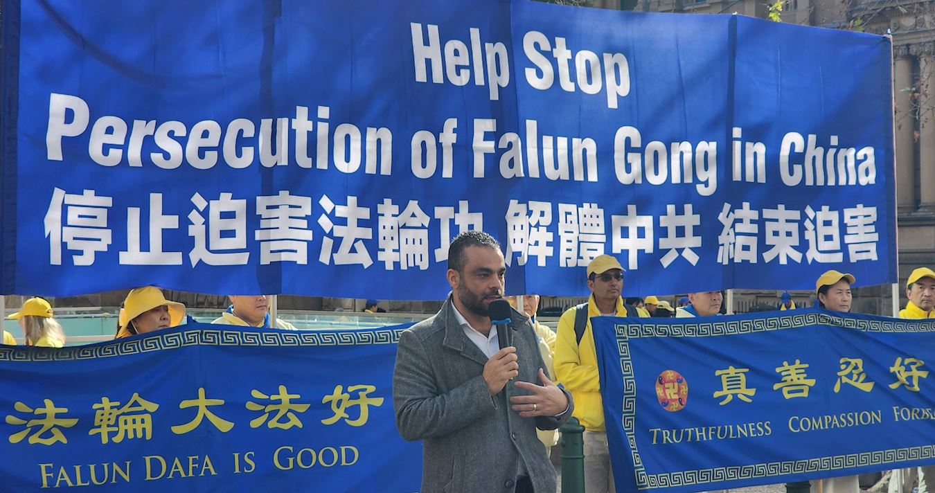 坎伯兰市(Cumberland)市议员艾哈迈德·奥夫(Cr Ahmed Ouf)表示,在了解到中国正在发生的针对法轮功学员的暴行后,他很荣幸能够在集会上发言。“任何人都不应该遭受酷刑、杀戮和迫害,我们都应该反对中共政权正在做的事情。