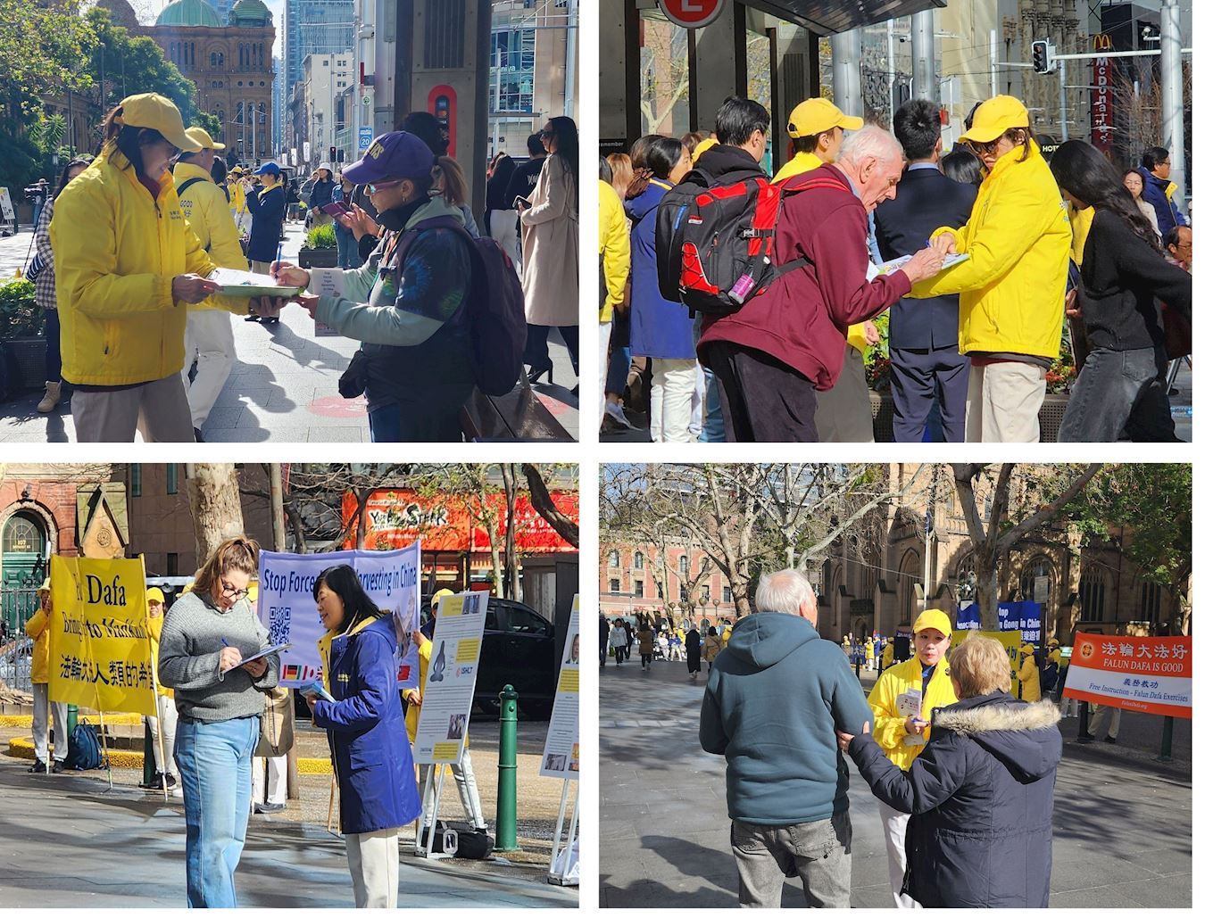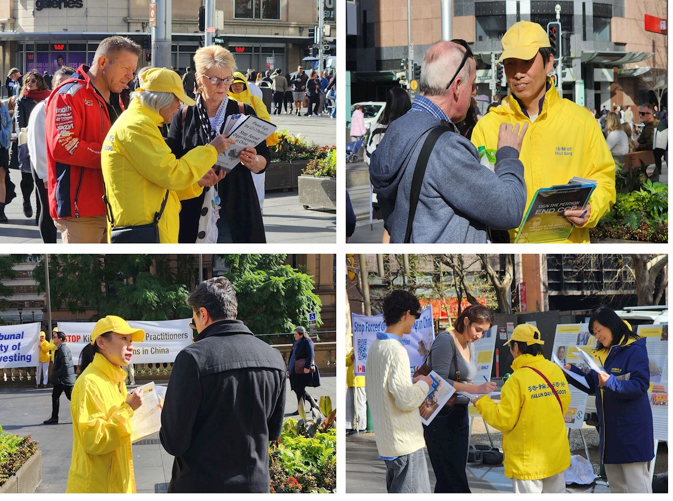 ![]() 图14~16:法轮功学员在与过往民众讲真相,有些人在签名支持法轮功反迫害。 |