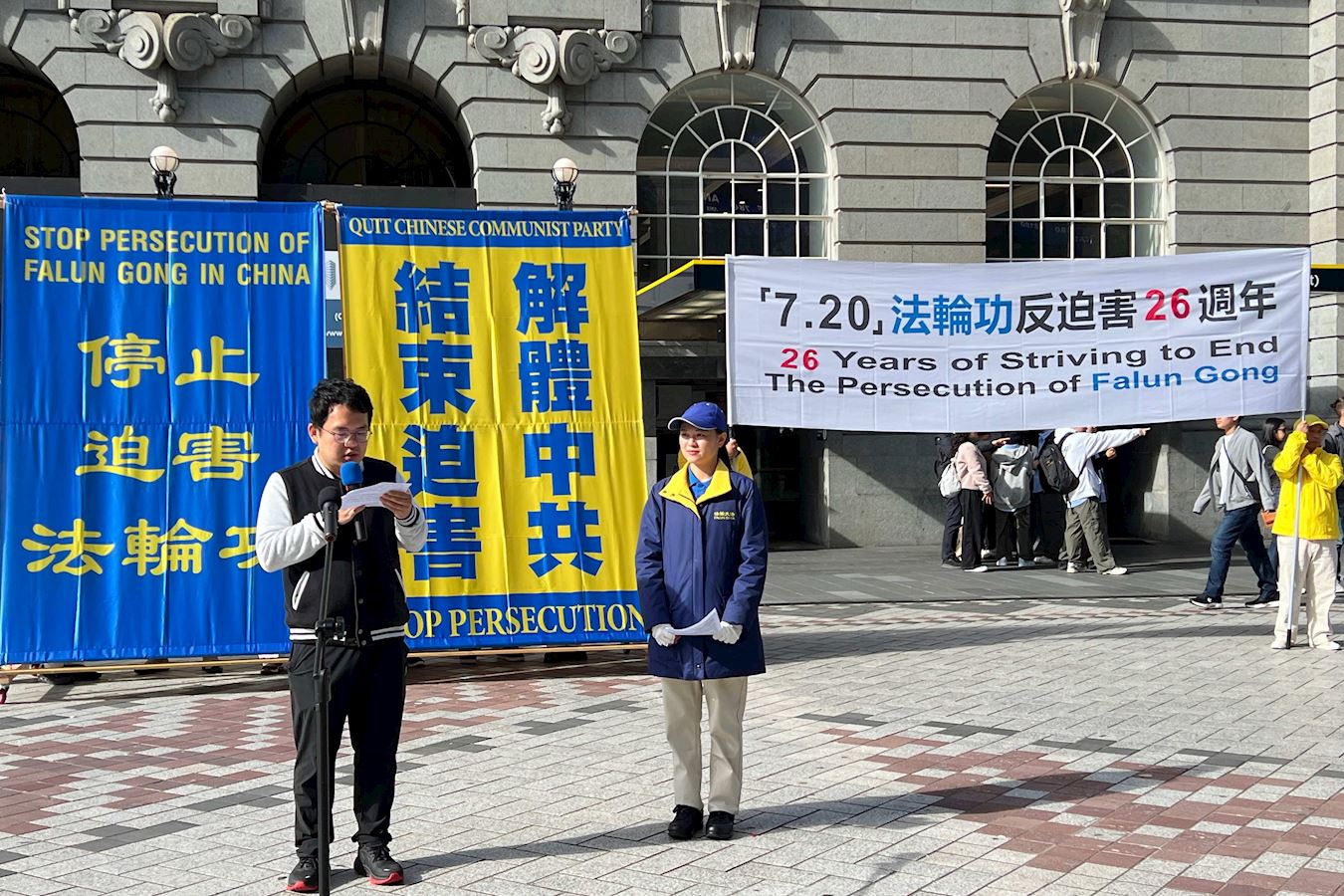 他强调:“法轮功群体二十六年来坚持和平反迫害,是中华民族真正的脊梁。”并呼吁:“停止迫害法轮功!释放所有良心犯!还中国人民一个信仰自由、言论自由、人格自由的未来!”