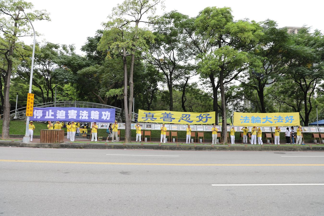 活动在盛夏的午后开始,来自台中市、彰化、南投的学员在广场上演炼五套功法,于广场两侧的人行道上拉开“法轮大法好”“真善忍好”“停止迫害法轮功”的横幅,并布置了图片展,向过往的车辆、行人展示诉求。有民众高呼:“法轮大法好!”也有不少路过的民众给学员加油打气。