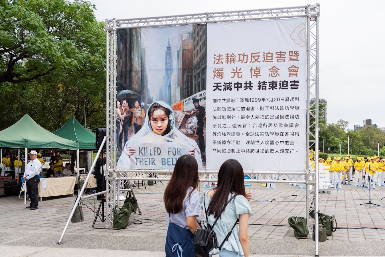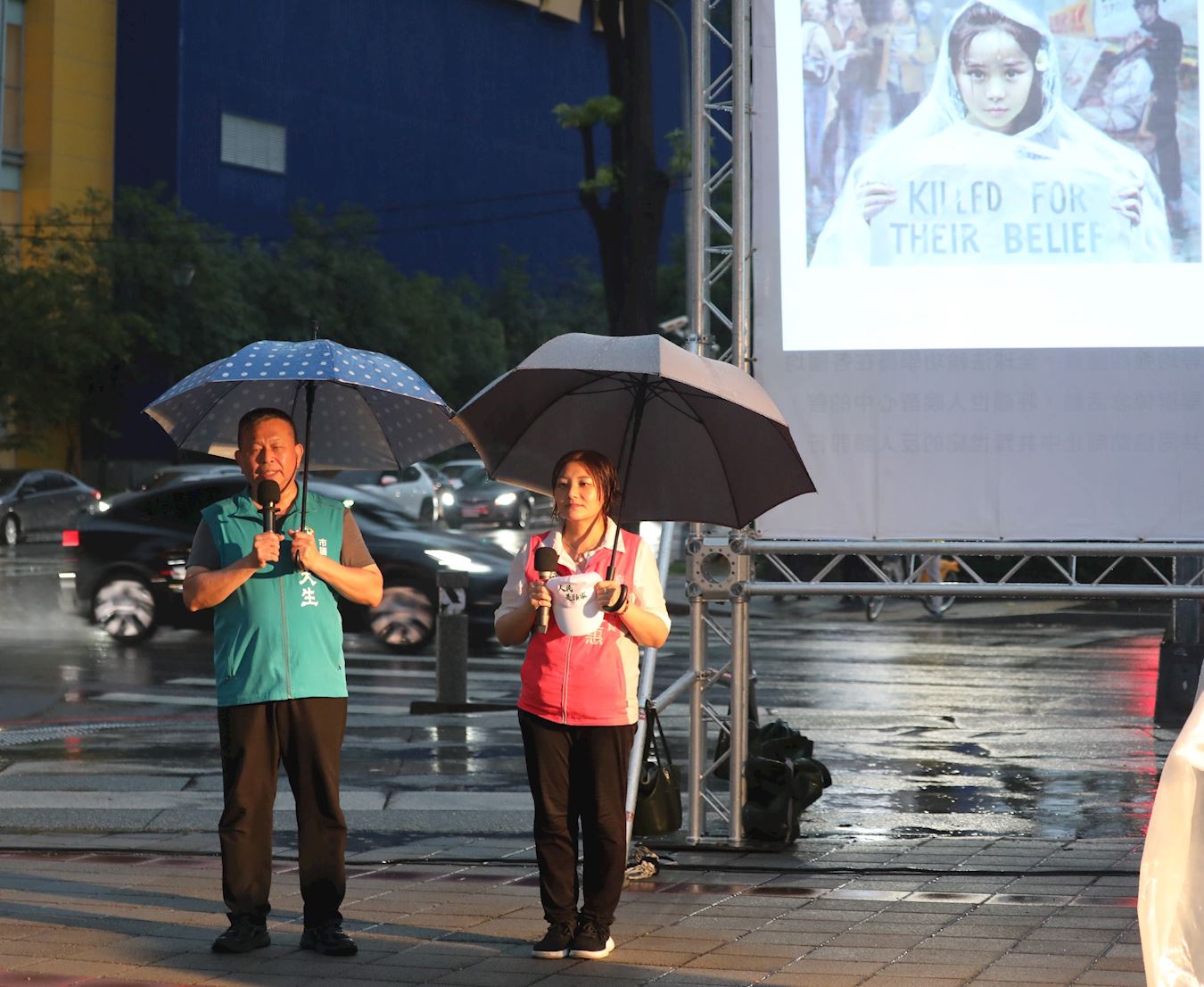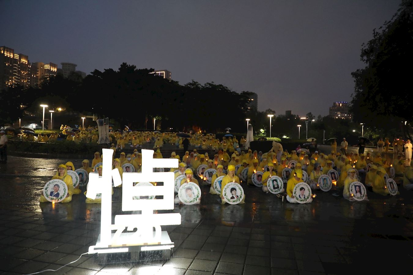 活动中忽然下起倾盆大雨,点点烛光在风雨中依旧点燃,悼念因信仰被迫害致死的学员。多位台中市及南投县民意代表冒雨到场声援,呼吁民众共同来谴责中共,支持法轮功。