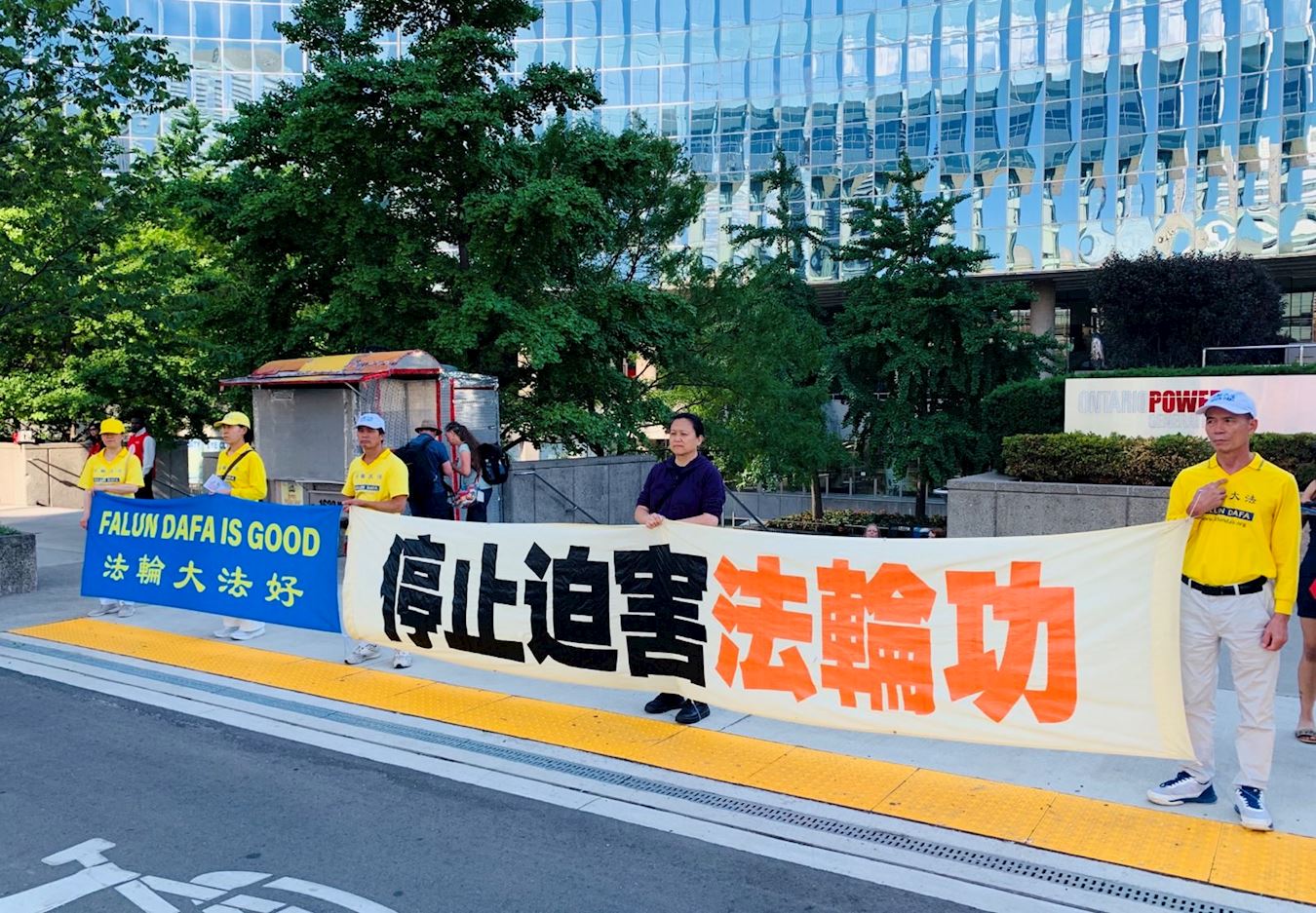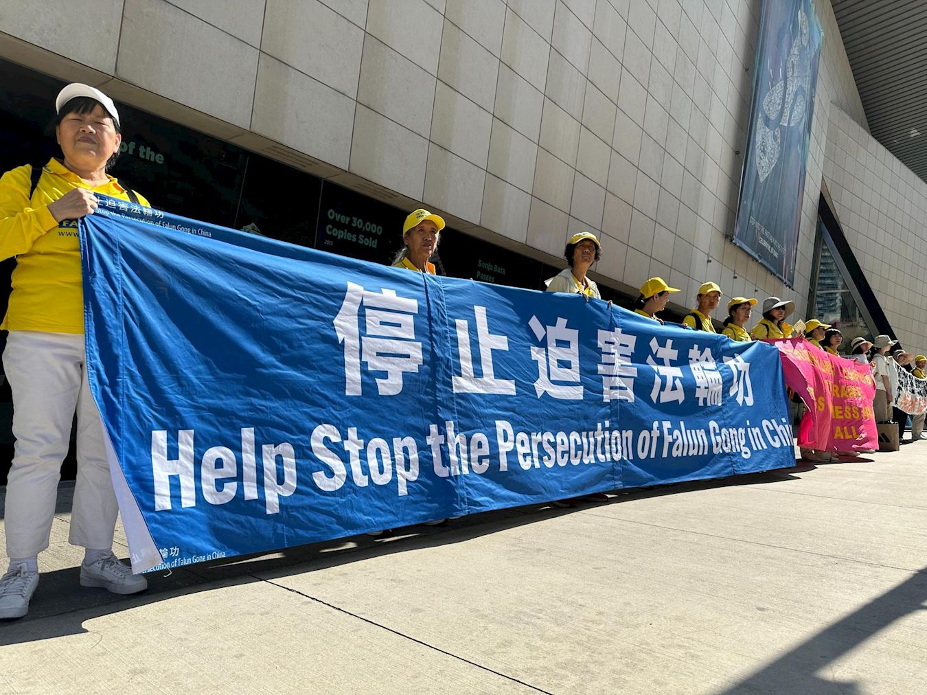 ![]() 图11:约瑟芬(左)支持学员反迫害,她希望更多人可以站出来向政府表达反迫害的诉求 |