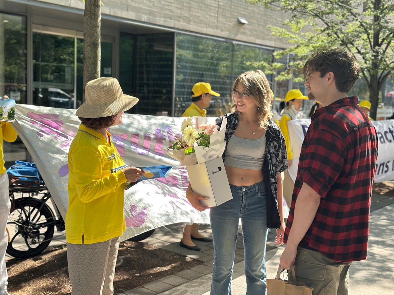 来往民众对法轮功学员反迫害表达了支持,他们纷纷在请愿书和反迫害明信片上签字,呼吁加拿大政府尽快采取行动,帮助停止这场对人权和信仰的迫害。