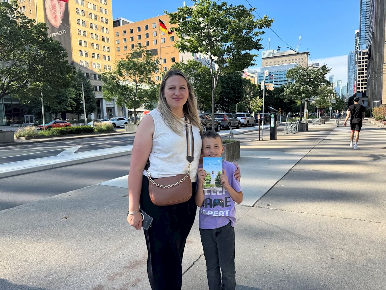 欧丽娅(Olha)来自乌克兰,现住在尼亚加拉市(Niagara),今天她带着孩子来多伦多旅游。她告诉学员:“我来自乌克兰,所以能体会你们的痛苦。”她认为中共活摘法轮功学员器官是可怕的罪行,因此在征签板上签了字,呼吁阻止这场迫害。