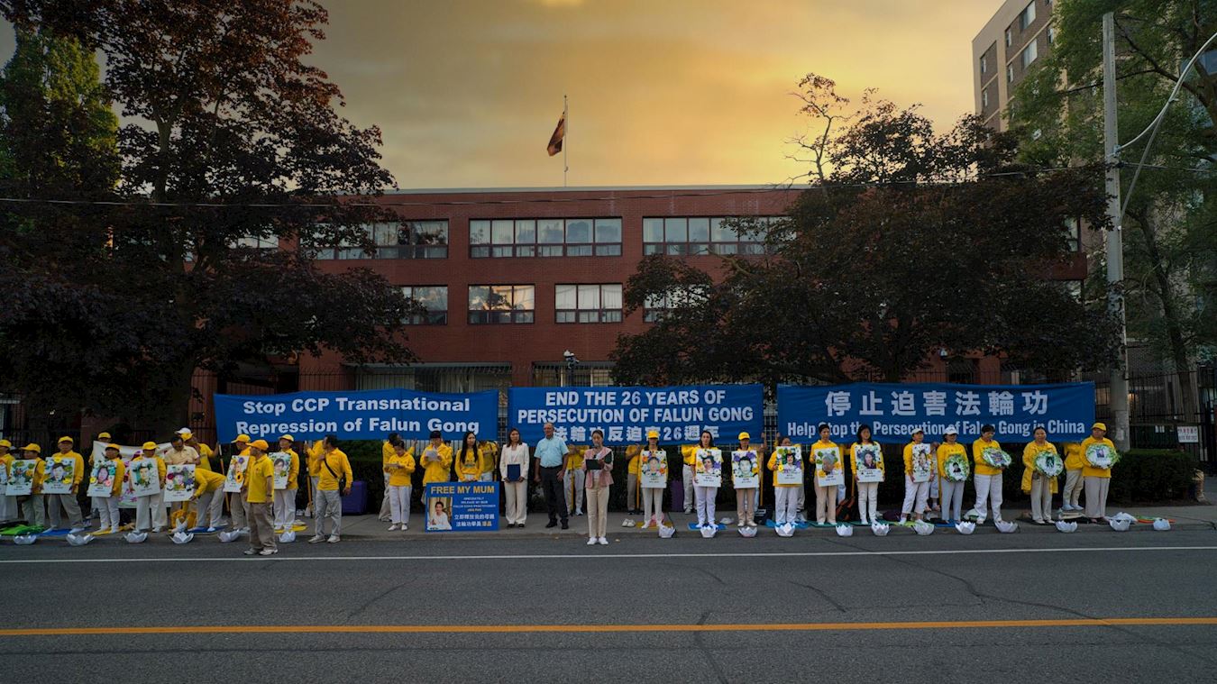 ![]() 图1:法轮功学员在中国领事馆门前举办新闻法会,呼吁中共停止对法轮功的迫害 |