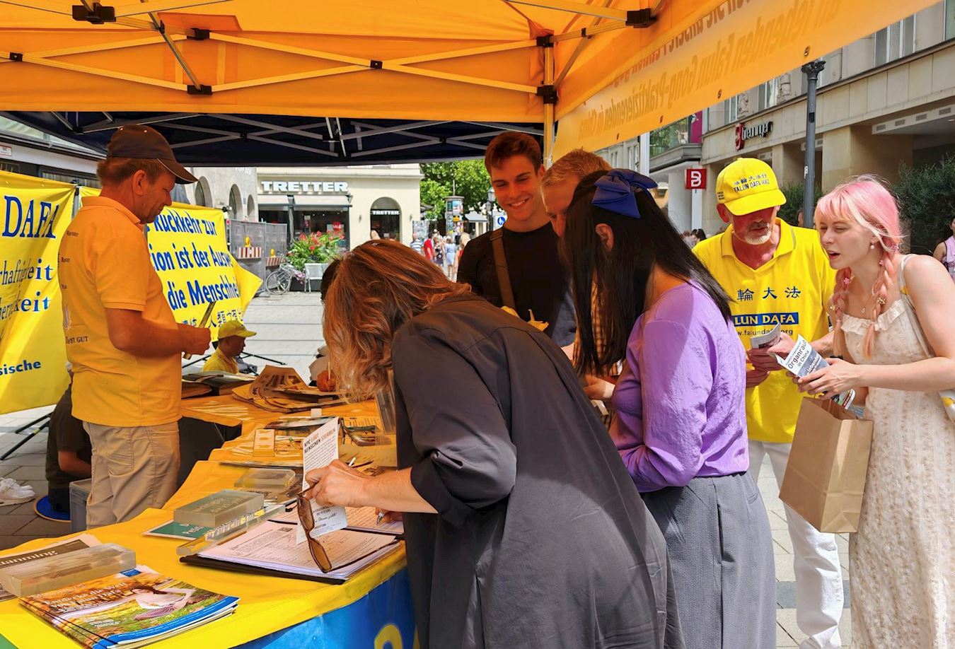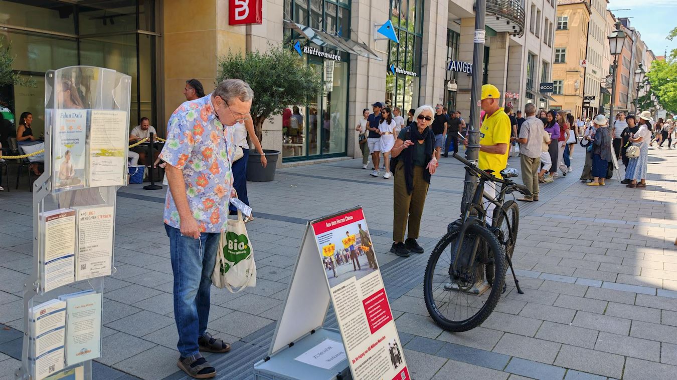 ![]() 图3:二零二五年七月十九日,法轮功学员在南部最大城市慕尼黑举办反迫害二十六年活动,民众踊跃声援学员反迫害。 |