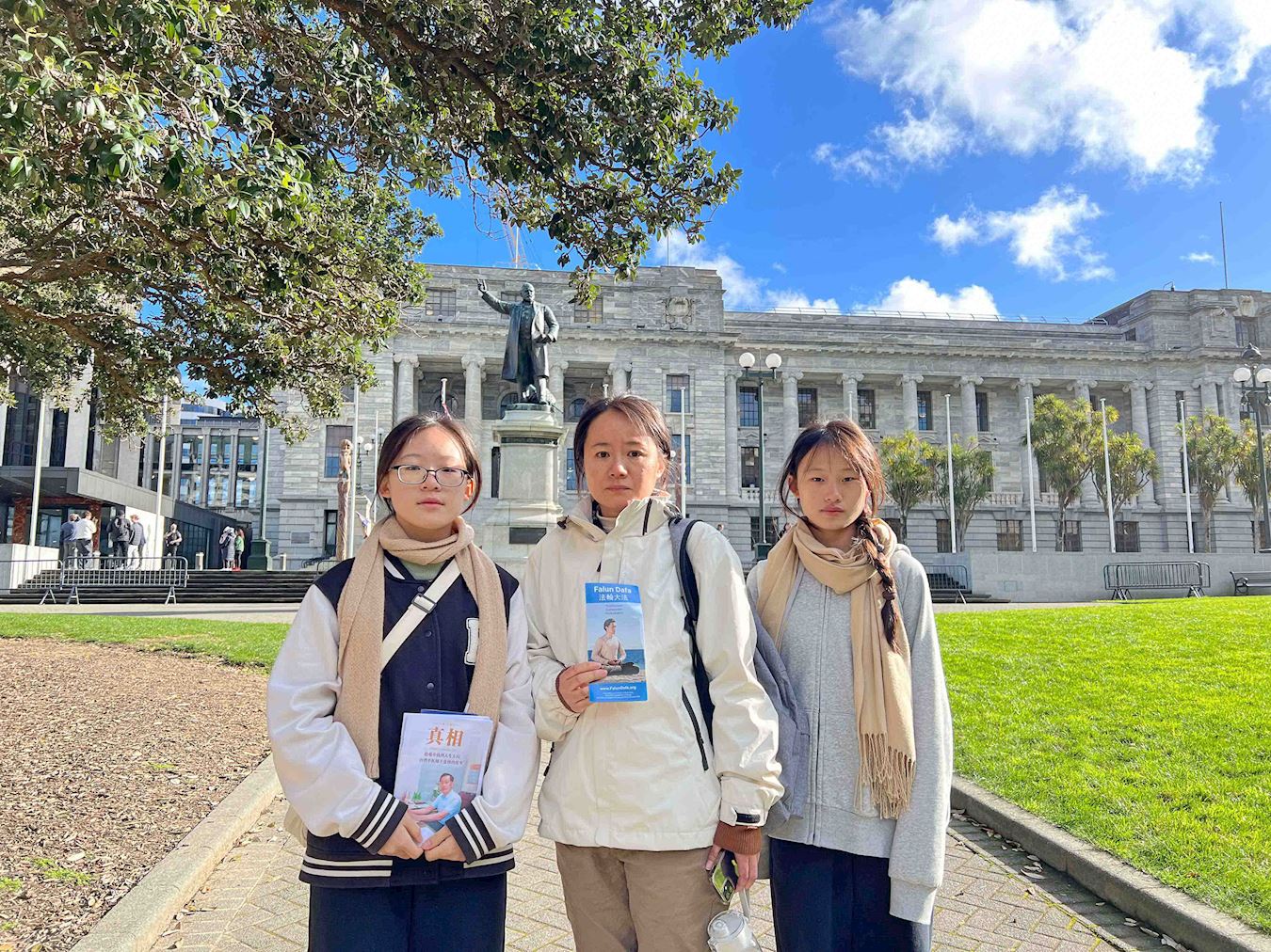 台湾的游客琳达(Linda)带着两个女儿在新西兰国会大厦前游玩。听了学员们的演讲后,她表示这是第一次听说中共活摘器官,她说:“但是我并不意外,我相信这种事会发生,因为中共没有民主,不给人民自由,同时还用大外宣美化自己。”