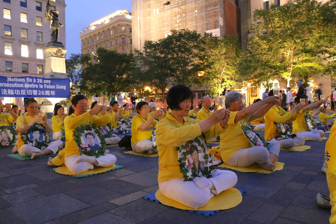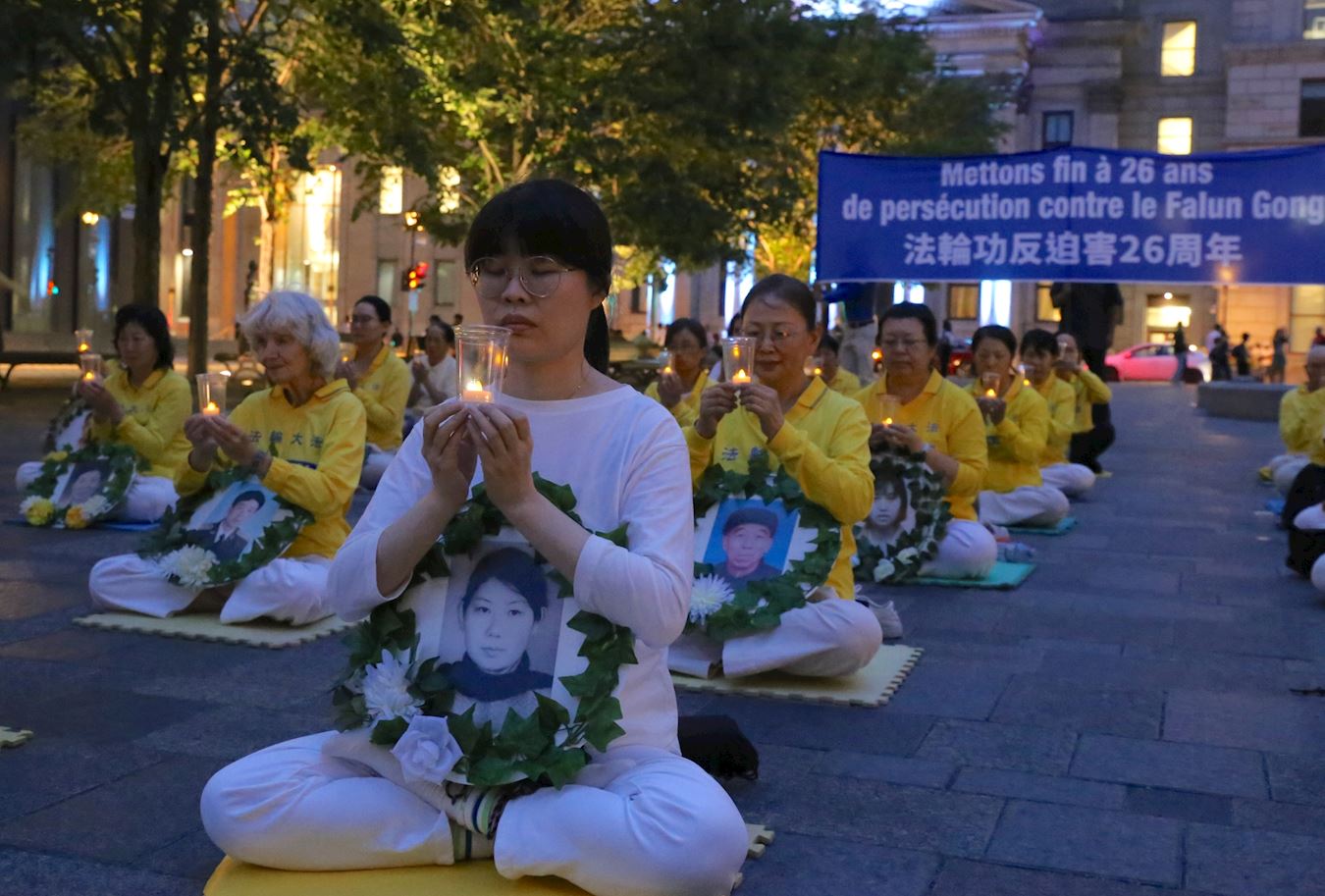 夜幕降临的广场上,盏盏烛光寄托着思念,也在呼唤善良人们对这场残酷迫害的关注,呼吁制止迫害。