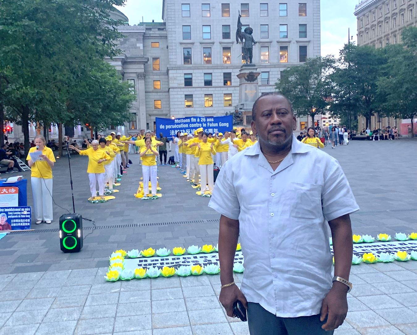“我发现非常非常重要的一点,法轮功所秉持的,是人类的价值、社会价值和人道主义的价值。这场迫害,是对所有人的迫害,这不仅是法轮功的问题,是全人类的问题。身为非洲人,我对法轮功遭受迫害深感忧虑,并谴责中国共产党对这个珍惜自由、爱与和平的群体所实施的迫害。”他说。