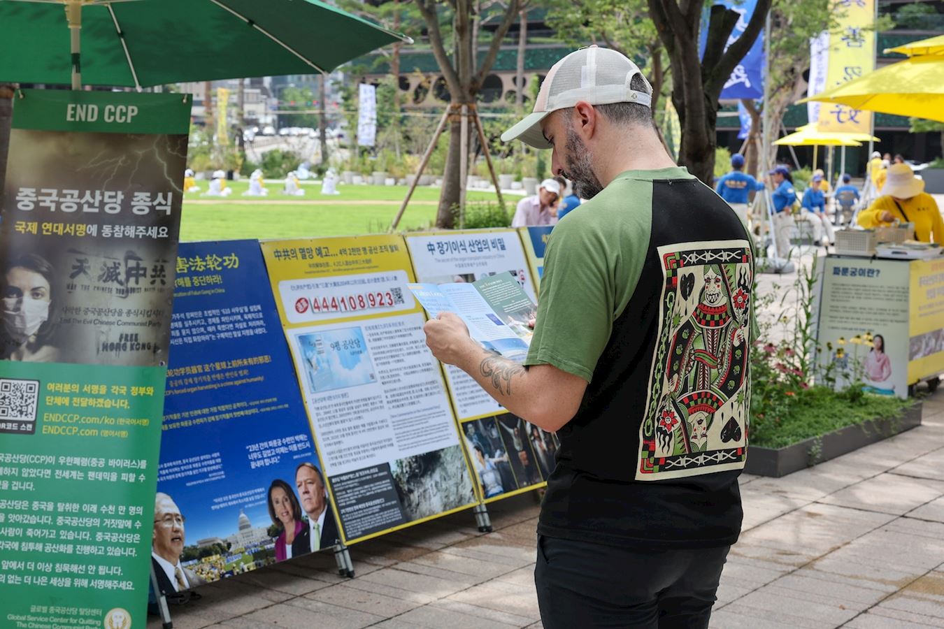 来自仁川的金锡源(김석원)先生注视向光化门方向移动的游行队伍时,注意到学员们手持的横幅内容,主动向记者询问法轮功的情况。在得知真相后他说:“中共迫害法轮功,可能是因为修炼者人数太多了。更让我震惊的是,他们竟然把修炼者的器官当成赚钱的工具。”他继续说道:“如果没有器官移植的需求,供应自然也会减少。器官移植应该用自愿捐献的脑死亡之人的器官才对,但他们却强行活摘,为了让一个人继续活着,而让那些原本不想死的另外一个人因此丧命,这实在是太悲惨了。”金先生还表示:“听说法轮功修炼‘真、善、忍’,而中共本来就是邪恶的组织,所以无论哪个团体强大起来,它都要打压,不分好坏。这种迫害必须立刻停止。”