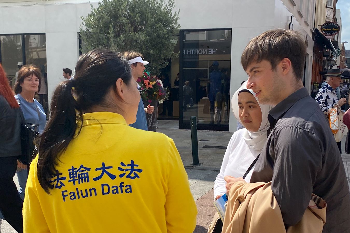 ![]() 图9~12:爱尔兰法轮功学员向民众传递法轮大法的美好,揭露中共活摘器官的反人类罪行,不少民众了解并支持法轮功。 |