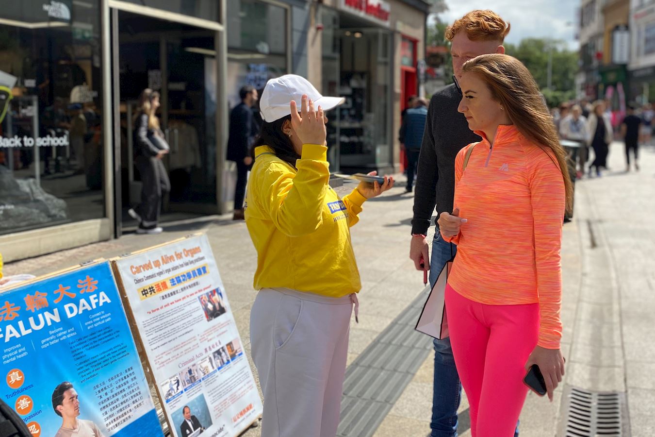 在揭露中共活体摘取法轮功学员的展板前,来自意大利的赛斯吉娅(Saska)边看边和朋友交谈。“迫害是不对的,非常糟糕。人们应该享有自由和爱”,赛斯吉娅签名要求制止迫害后说,“我想要尽一份力。”