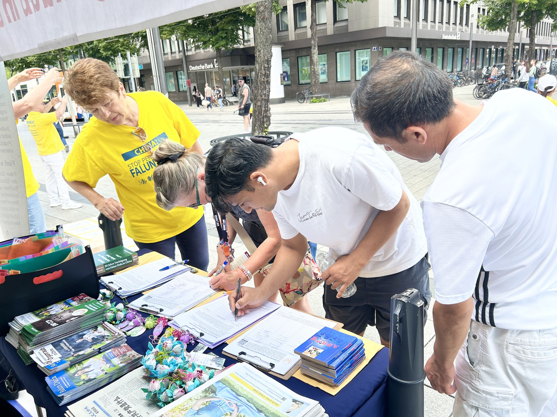 在活动现场,法轮功学员展示五套优美舒展的法轮功功法,希望向更多的人传播这个以真、善、忍为普世价值观、祛病健身、净化心灵的、源于中国的古老佛家功法。经过展位的许多路人,在观看揭露中共迫害法轮功学员罪行的信息,并跟法轮功学员交谈,了解事实真相后,纷纷伸出援手,签名声援法轮功学员的反迫害活动,同时谴责中共对人权的侵犯和践踏。