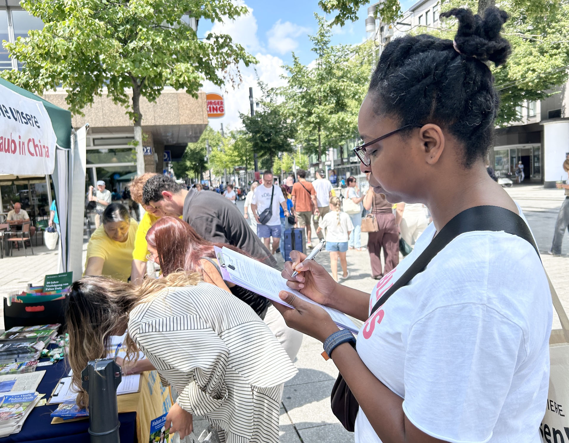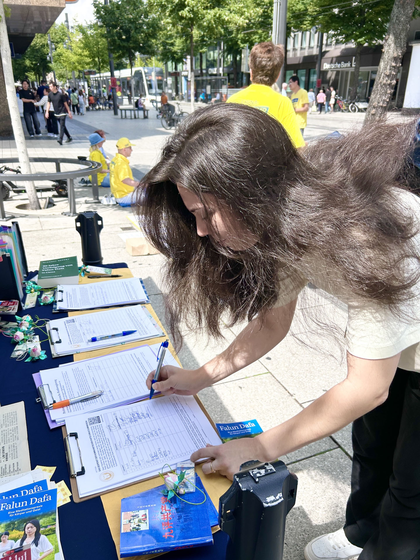 参加活动的乌克兰裔法轮功学员尤莉亚(Yuliia)在三年前由于俄乌战争来到了德国。尤莉亚回忆说:“二零零七年,一个朋友向我推荐法轮大法。《转法轮》这本书我读了一遍,然后就把她放在了一边五年。当时我担心自己无法践行书中的原则。”