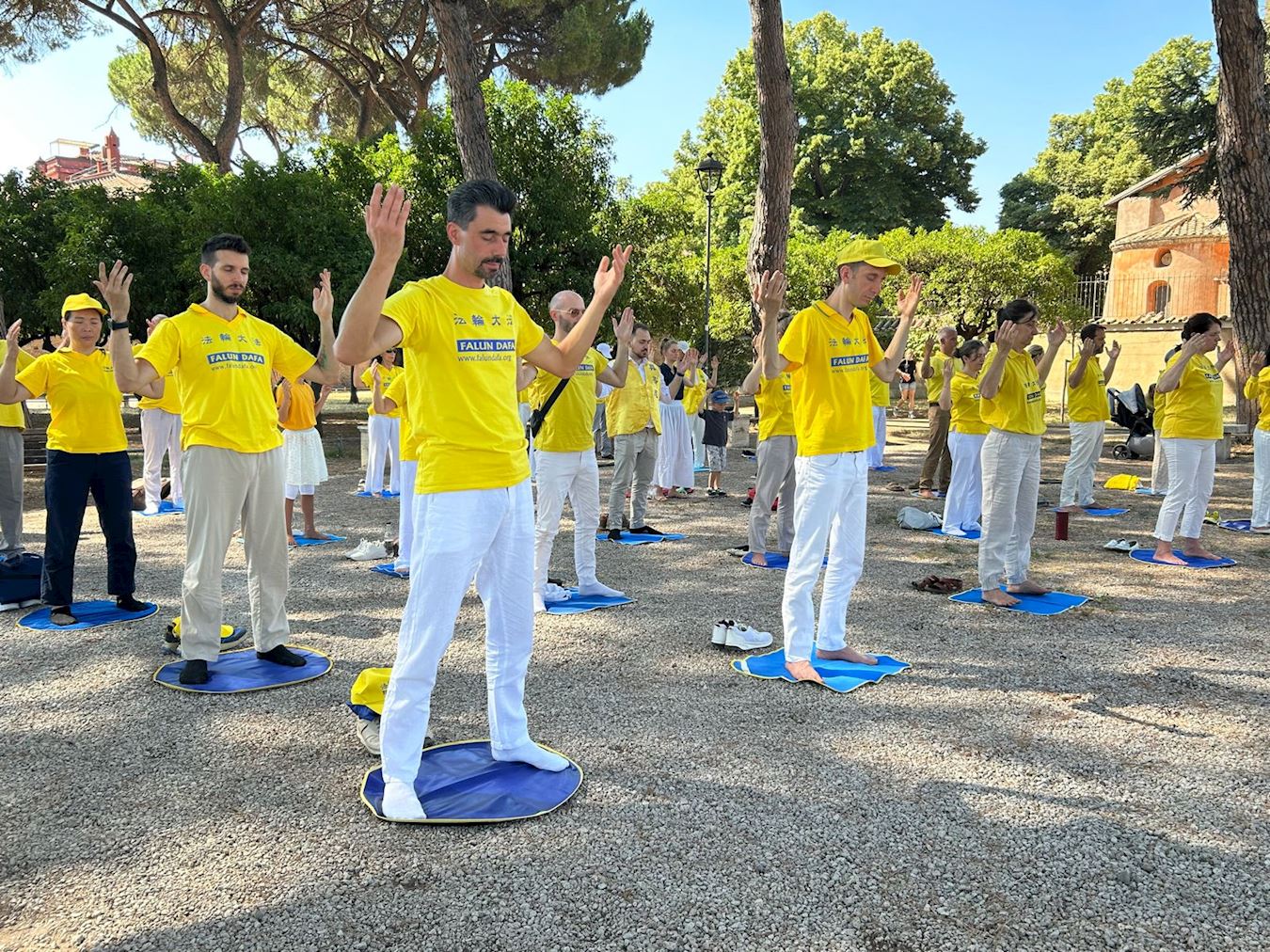 七月五日上午,法轮功学员来到首都罗马著名的橘子公园(Giardino degli aranci)集体炼功。