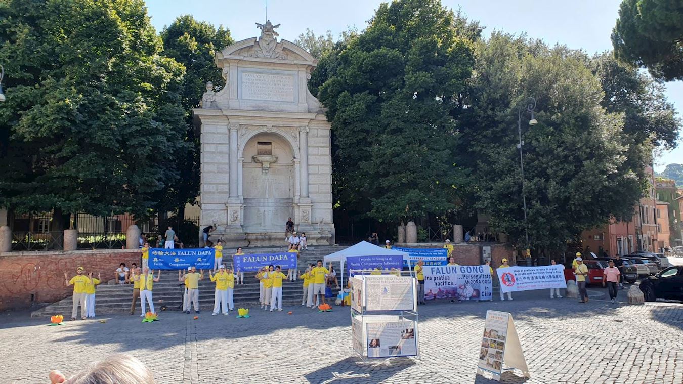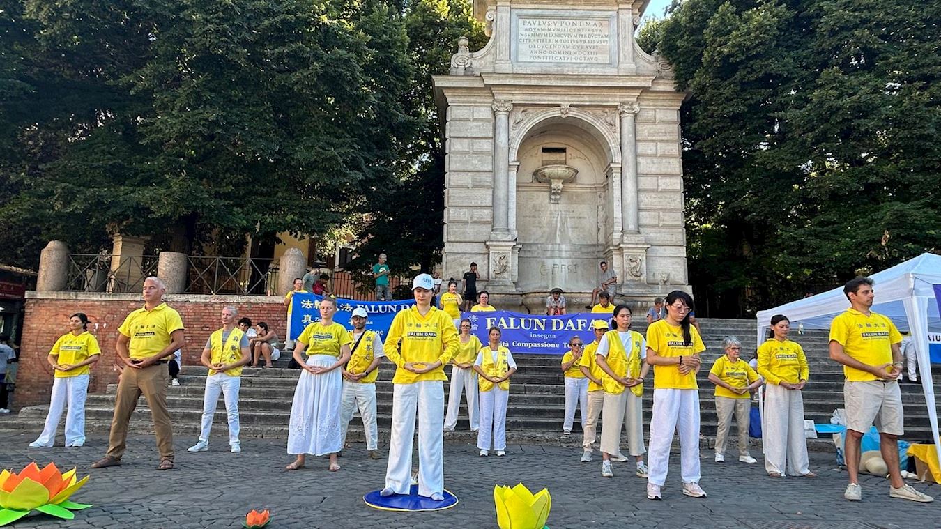 【明慧网二零二五年七月八日】二零二五年七月五日星期六,在法轮功反迫害二十六年之际,意大利法轮功学员在首都罗马通过集体炼功,向世人展示大法美好,弘传真、善、忍。同时,学员们向民众传播法轮大法在中国大陆受到二十六年的非法迫害,呼吁立即停止迫害法轮功。