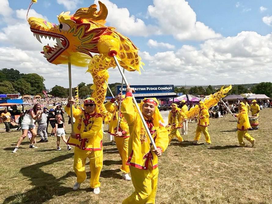 金龙飞舞气球节 英国游客支持法轮功
