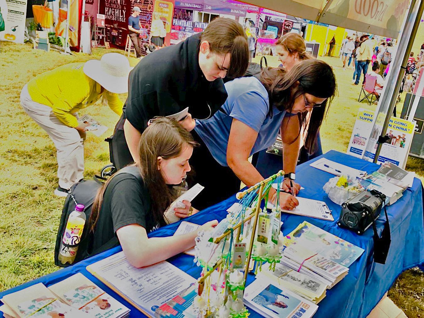 图6:气球节游人纷纷签名声援法轮功学员反迫害。