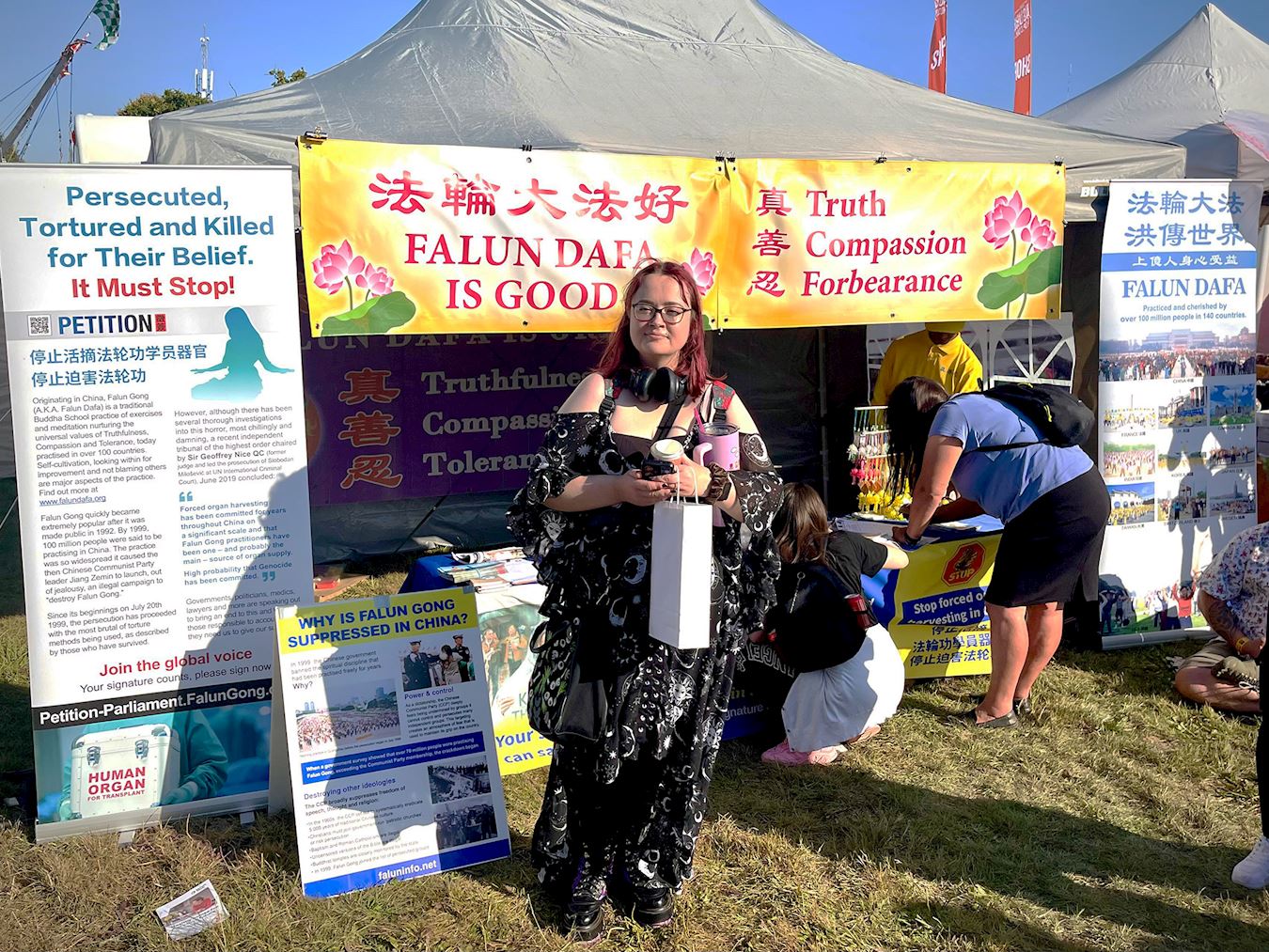 在这个色彩缤纷、热气球漫天的节日里,法轮功的真相之声和传统文化的展示同样吸引着来自世界各地的游客。无论是亲历信仰遭受压制的中国留学生,还是第一次听闻迫害真相的英国市民,许多人都表达了对法轮功“真、善、忍”原则的认同与支持。正如一位游客所说:“这些原则是人类需要的,是善的力量。”