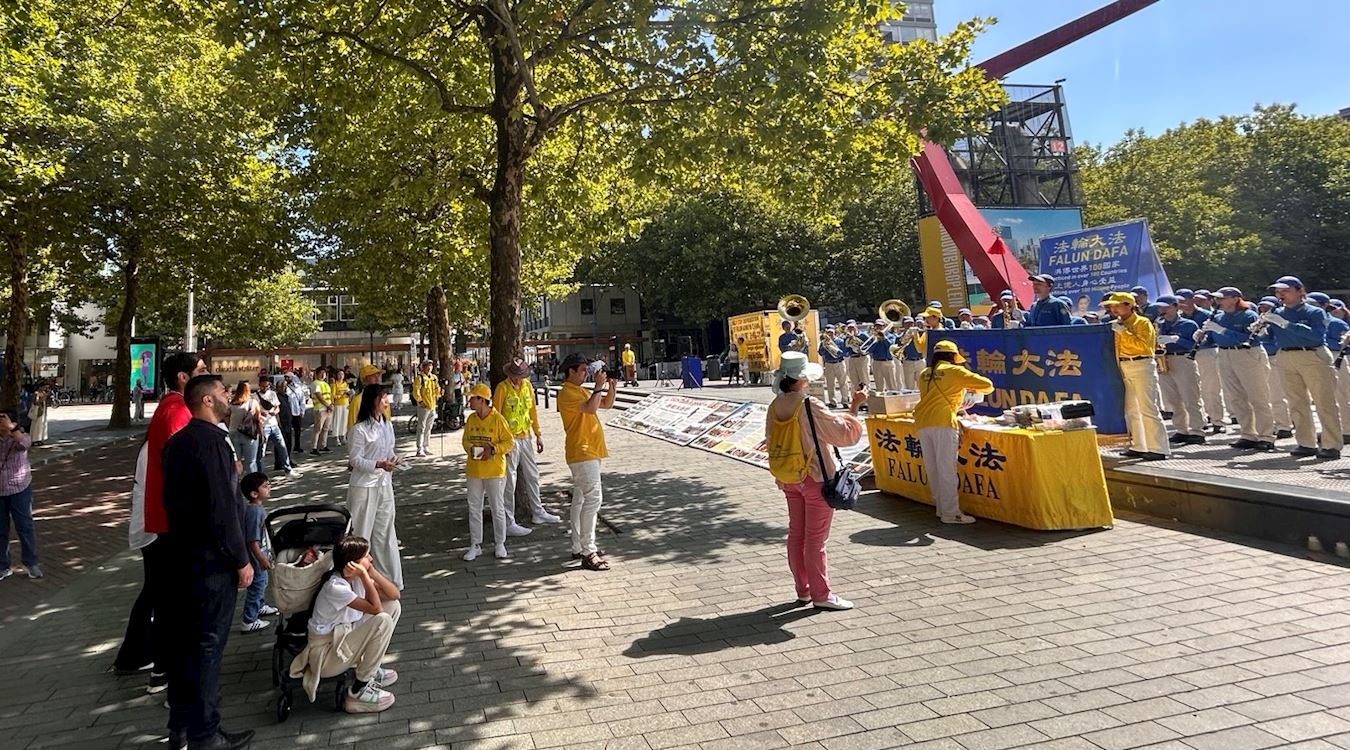 ![]() 图1~2:二零二五年八月九日,法轮功学员在荷兰鹿特丹举办反迫害集会游行,来自德国、新西兰、比利时、英国、法国、荷兰等部分欧洲国家的法轮功学员组成的天国乐团参加了此次活动。 |