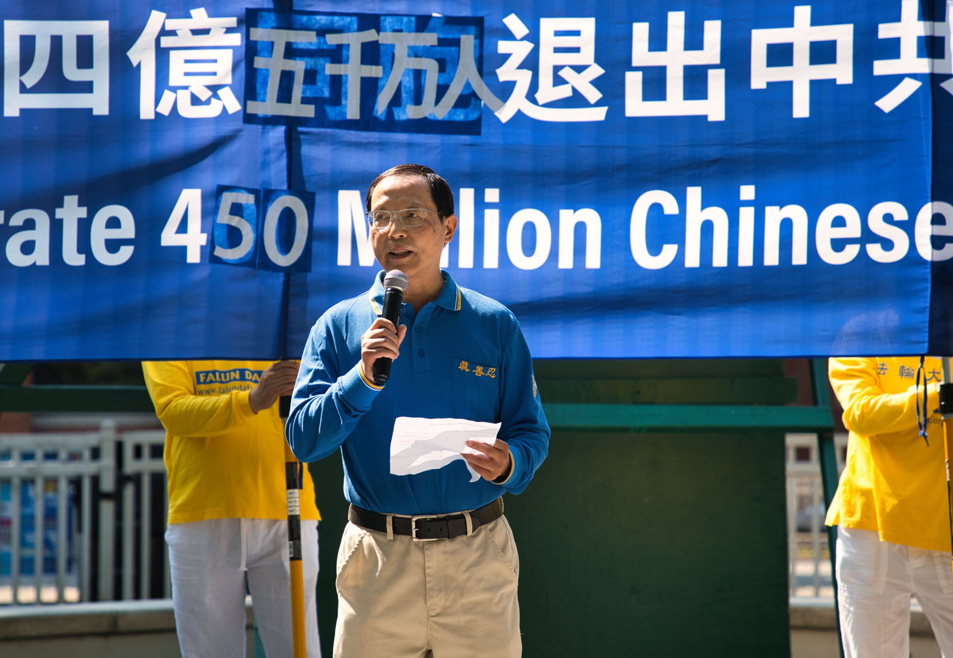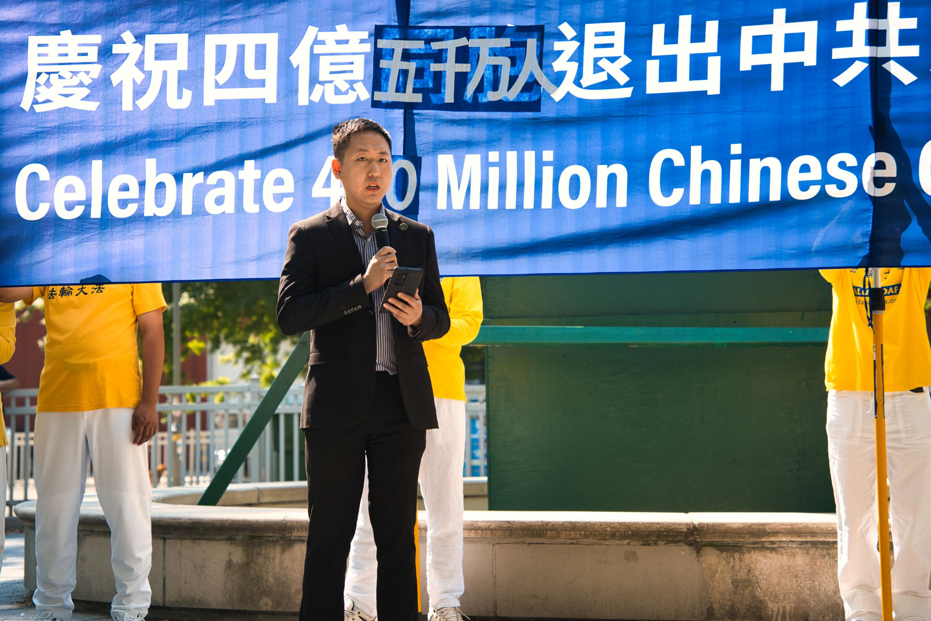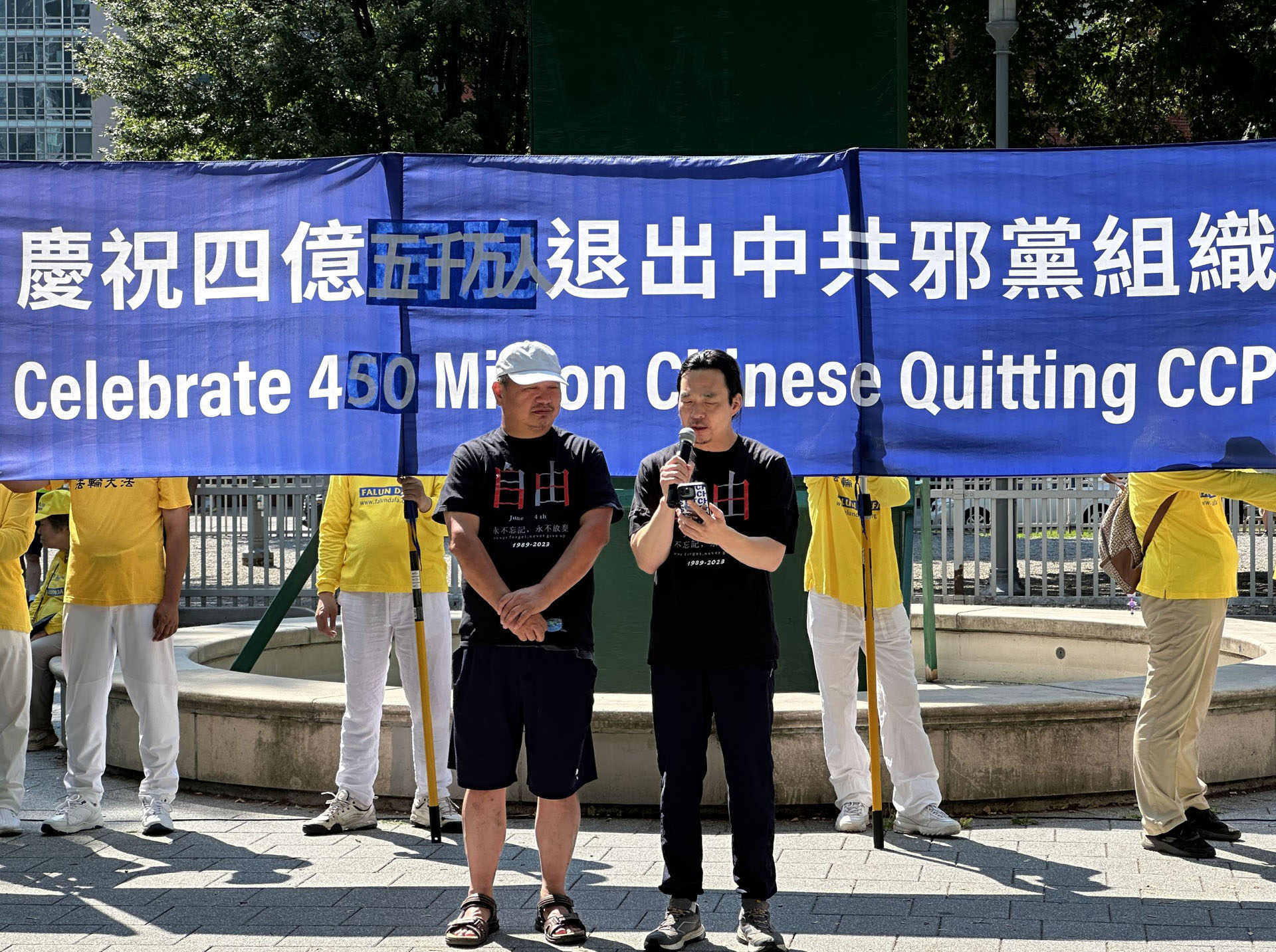 加拿大退党服务中心负责人江帆先生,是《九评》发表后全球第一位公开实名声明退党的人。他在集会上发表了演讲,“我们站在这里,共同庆祝4.5亿中国同胞勇敢地退出了中共的党、团、队组织,他们认清了中共的邪恶本质,他们选择了光明的未来。”