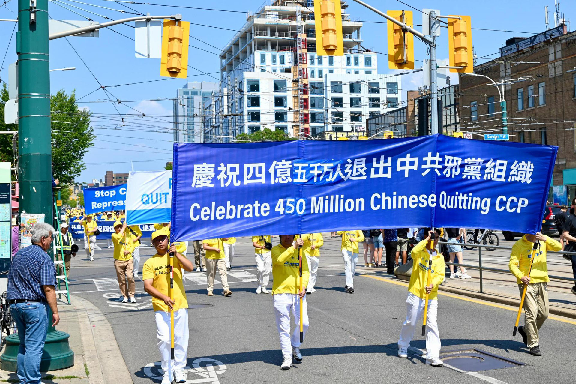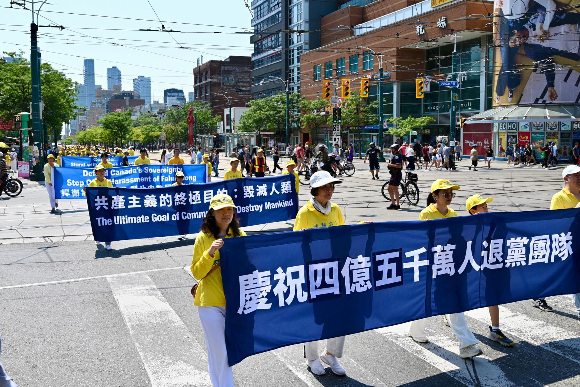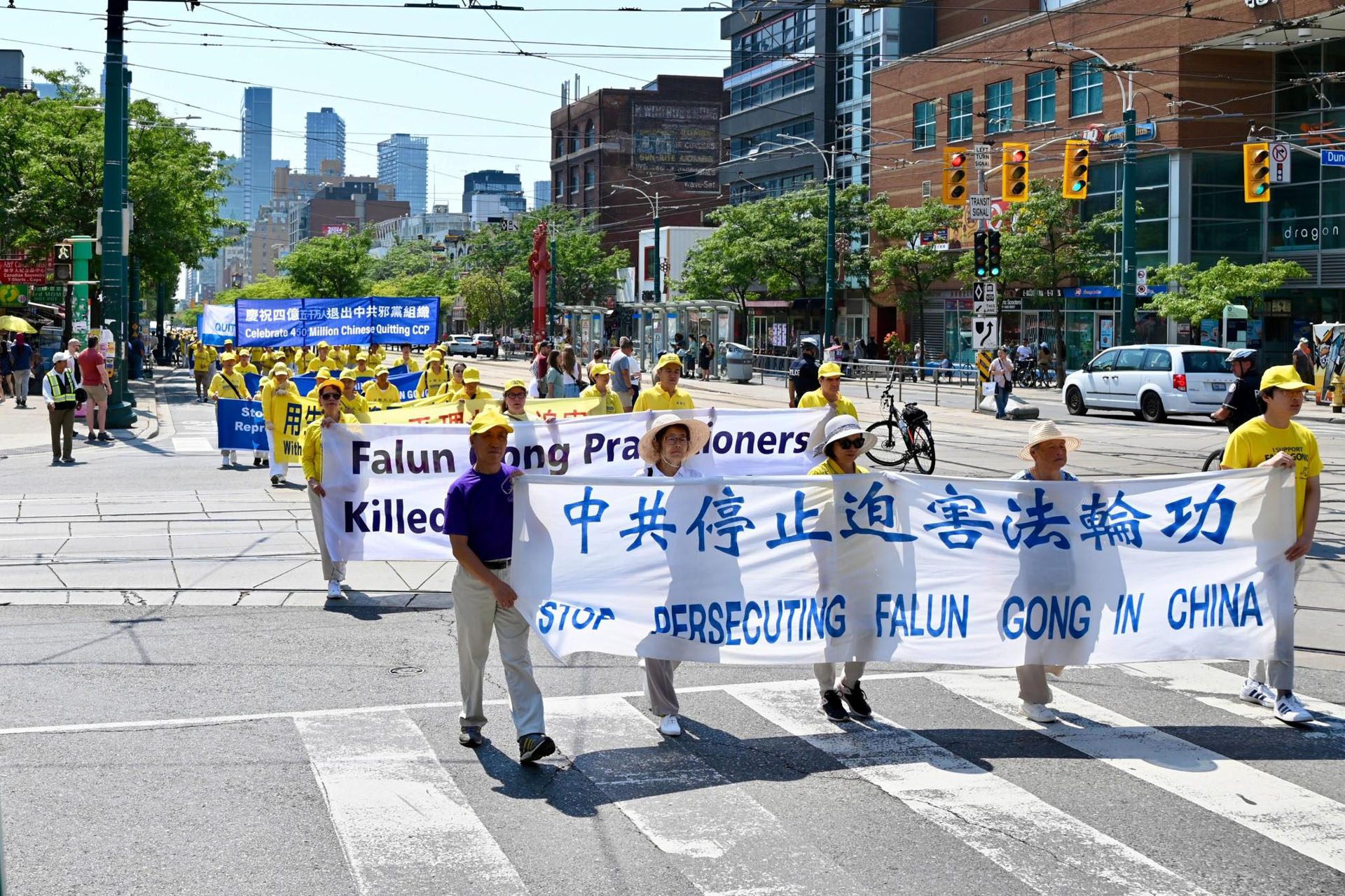 ![]() 图5~14:多伦多法轮功学员在市中心的唐人街举办游行,庆祝4.5亿中国人退出中共邪党组织。 |