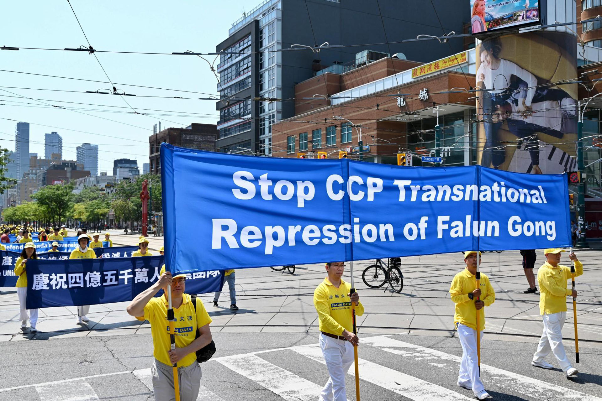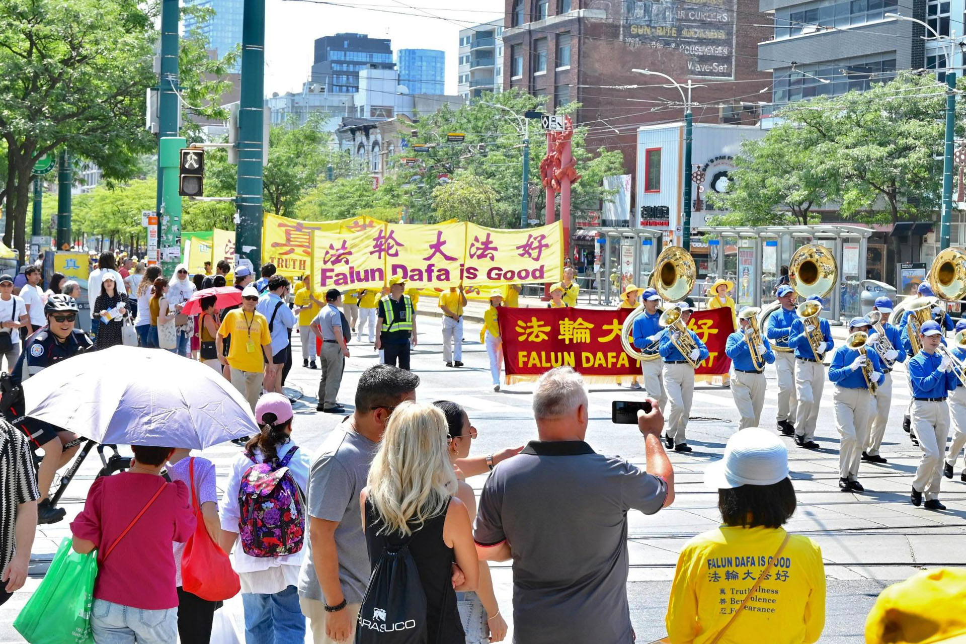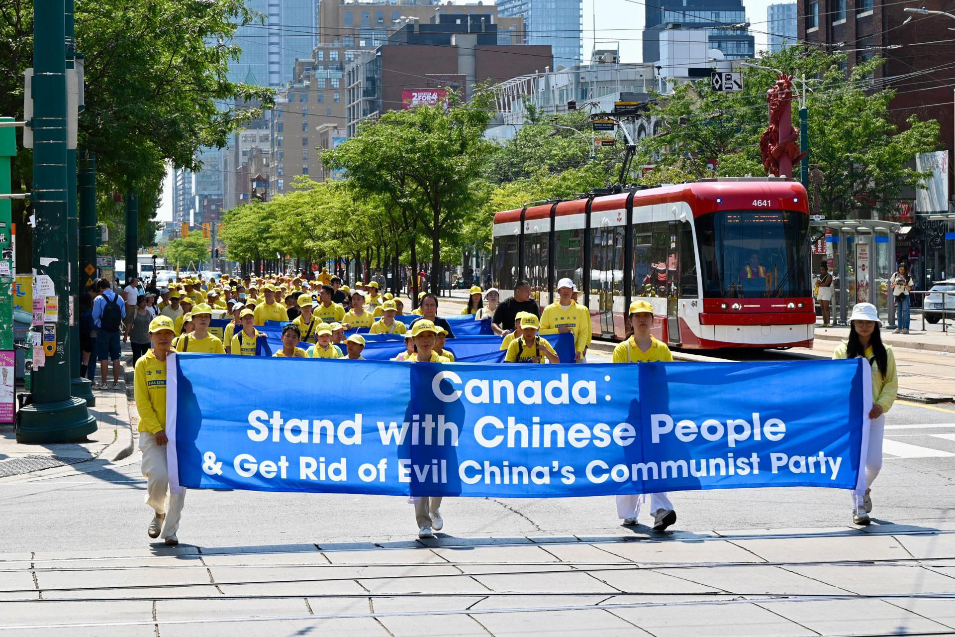 ![]() 图5~14:多伦多法轮功学员在市中心的唐人街举办游行,庆祝4.5亿中国人退出中共邪党组织。 |