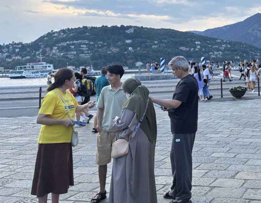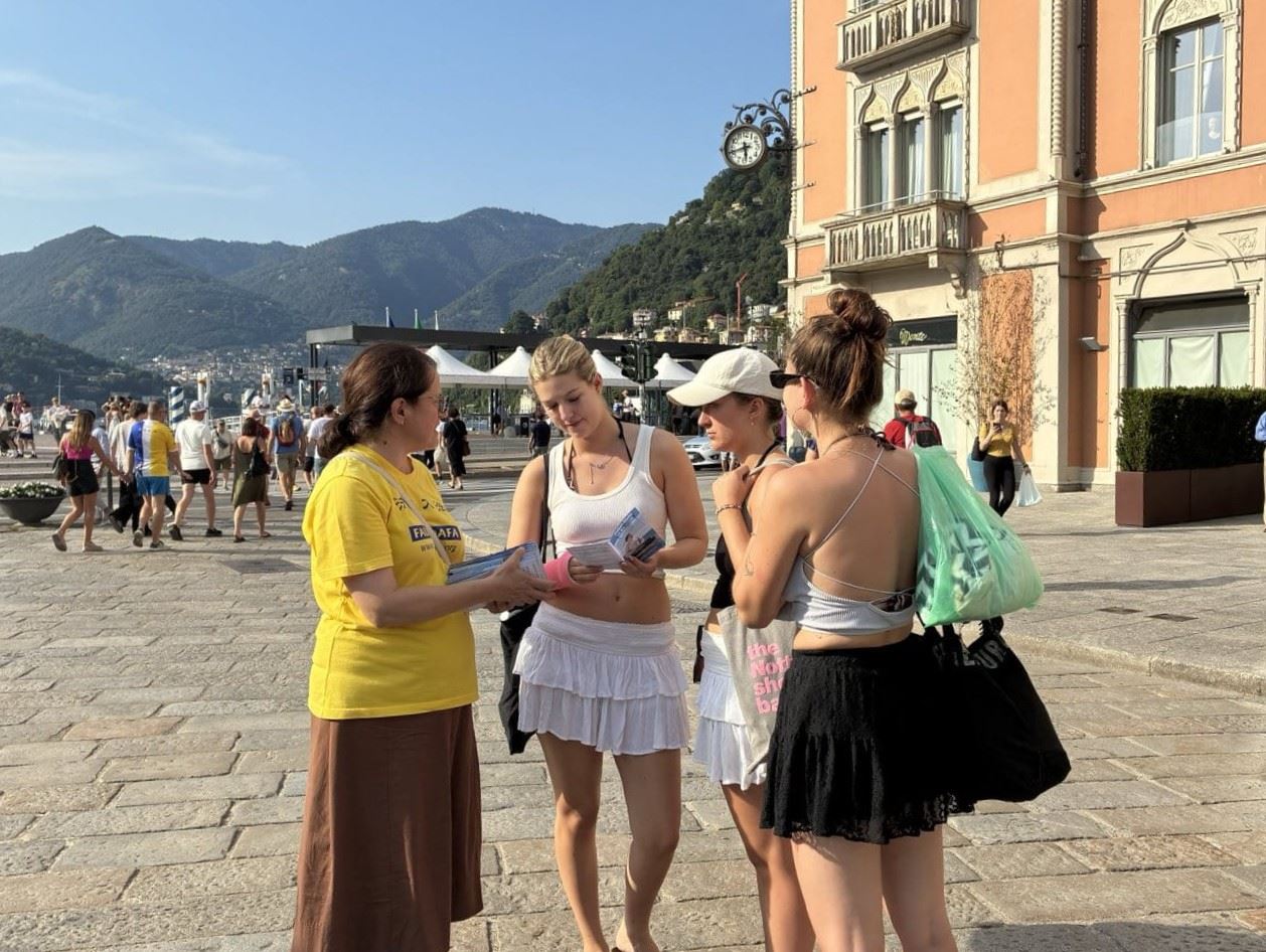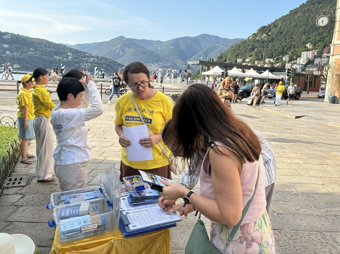 八月十七日,意大利北方法轮功学员来到了与瑞士接壤的意大利最北部的城市科莫(Como)举办活动,湖光山色映衬下的美丽城市,首次迎来了法轮大法的福音。