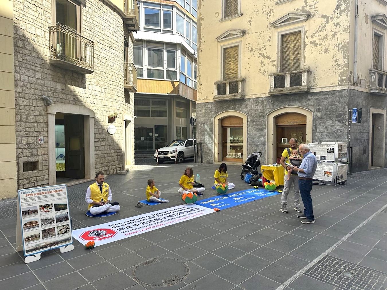 八月二十三日,法轮功学员首次在南部城市波登扎(Potenza)举办活动,把法轮大法的真相展示给当地民众。