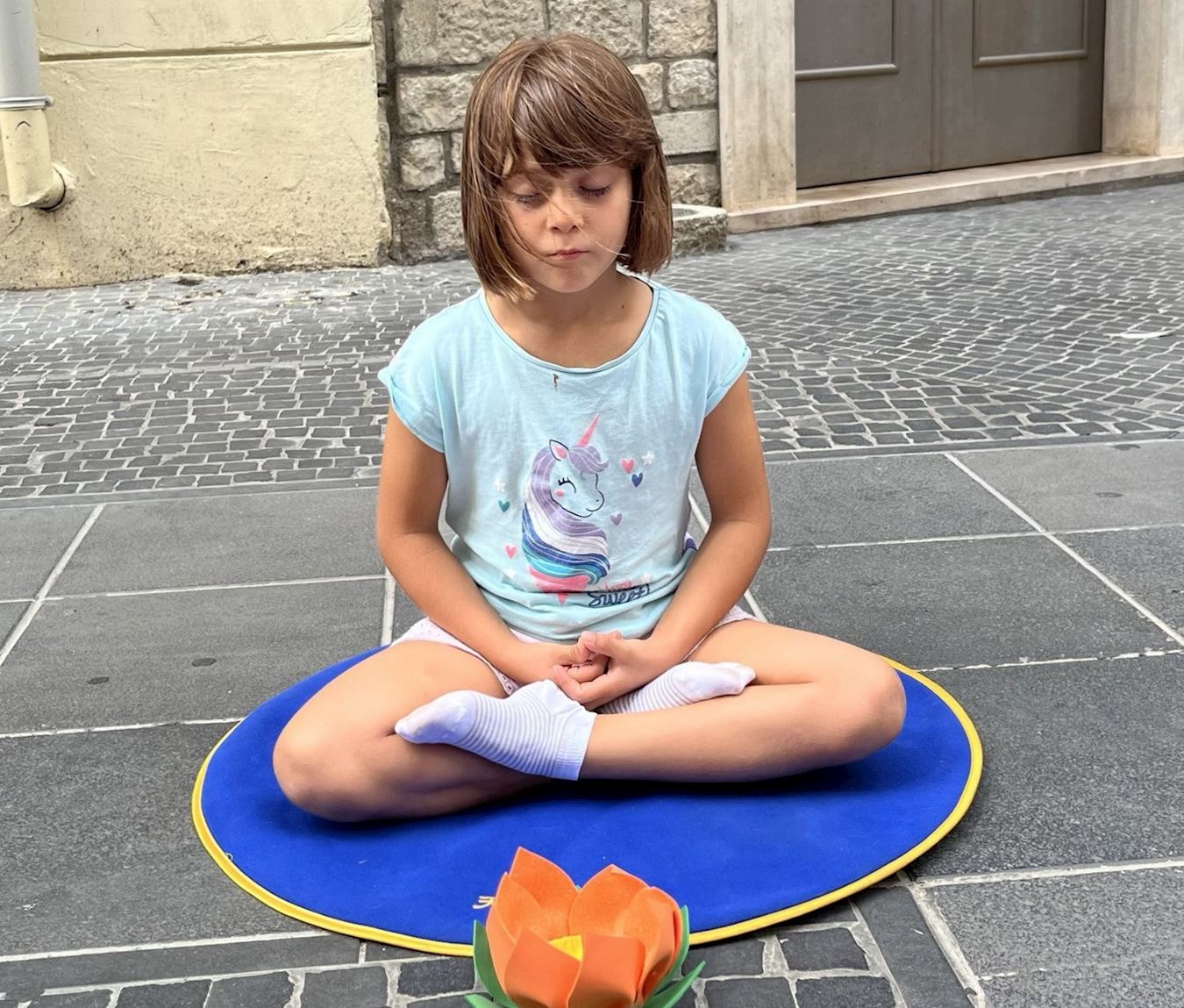 来自意大利阿雷佐(Arezzo)附近城镇的一位女孩看到写有真、善、忍的横幅时感动落泪。她说自己一直在寻找类似的修炼方式,希望能把这样的理念带回自己的家乡。她打算联系离她最近的炼功点学习功法,并在离开前由衷地感谢学员的付出。