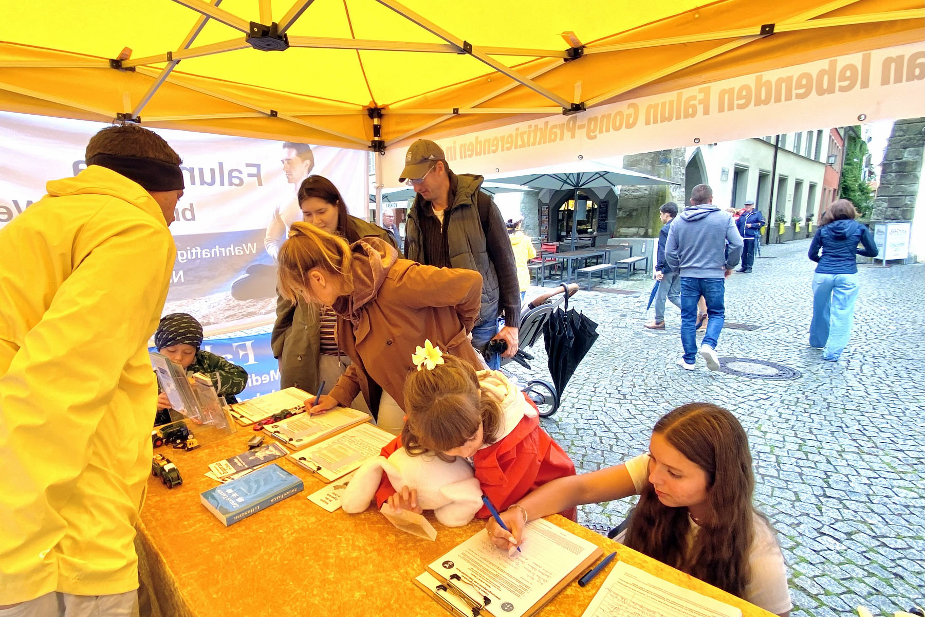 当天,法轮功学员通过展示功法、分发资料、与民众交谈的方式,向当地民众与游客讲述法轮功是什么、为什么中共要迫害法轮功,以及中共活摘法轮功学员器官的罪行。明白了真相的路人纷纷签名,声援法轮功学员反迫害。