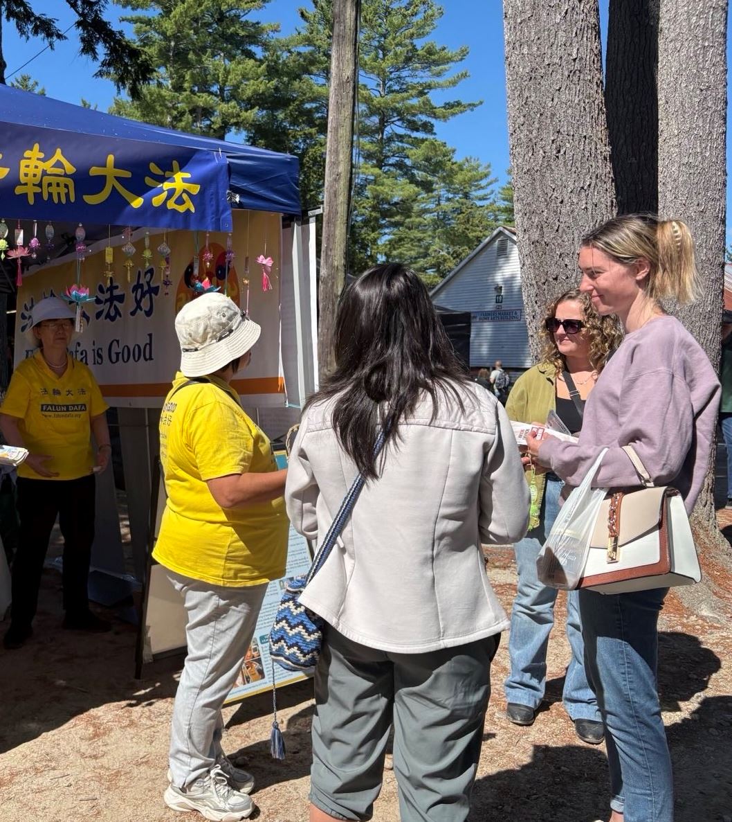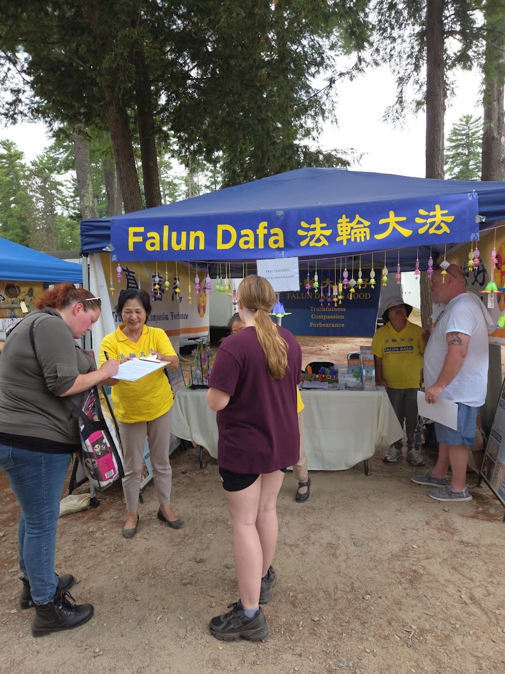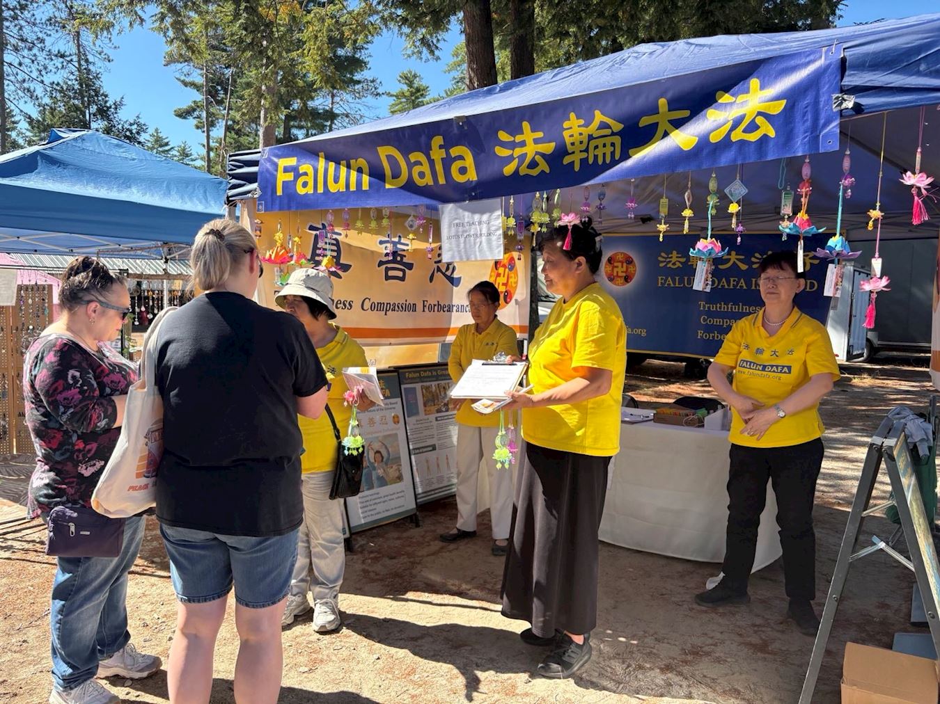 当地的法轮功学员在活动中连续五天设置了法轮大法真相展位,在展位上摆放了展板,向人介绍法轮功,展示舒缓祥和的法轮功功法,派发传单并征集签名支持《法轮功保护法案》。法轮功摊位不仅吸引了当地民众和游客,也同时受到了活动中的摊主和活动主办方的工作人员的关注。