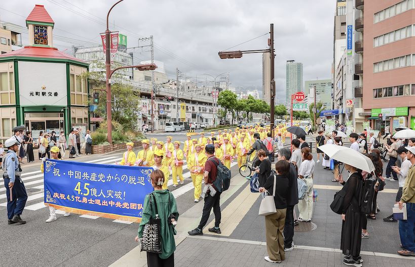 时值大阪万博会期间,又是三天的假期,来自日本国内和海外的游客络绎不绝。二零二五年九月十三日,部分日本法轮功学员在神户举行游行,部分日本法轮功学员在神户举行游行。游行队伍中“真善忍好”、“立即停止迫害法轮功”、“庆祝4.5亿勇士退出中共党团队”等横幅向沿途人们传递着有力的信息。很多人拍照录像,有人向学员们说“加油”,也有人拉下车窗向学员们拍手致意。还有华人当场做了三退。