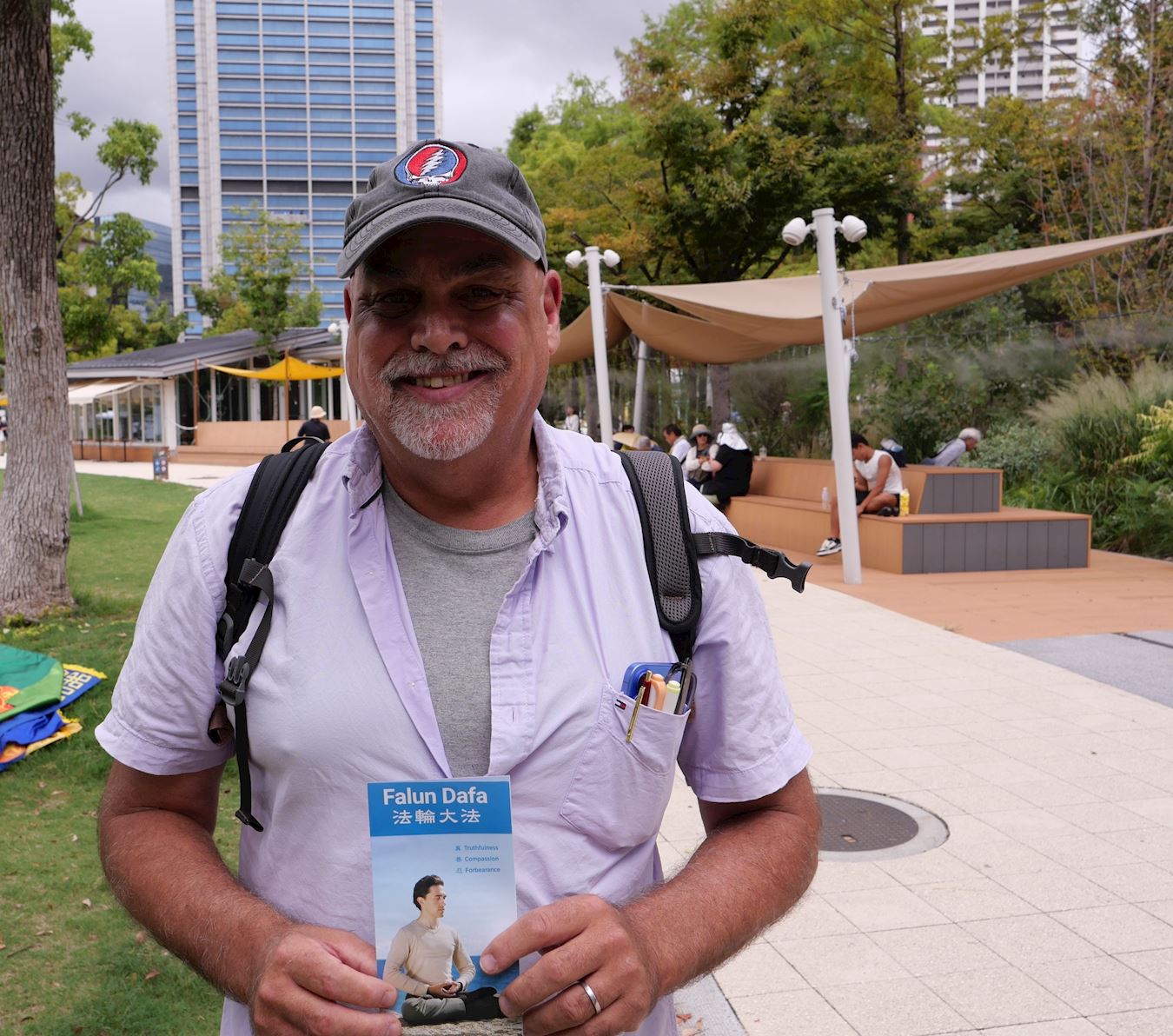 美国游客道格(Doug)先生赞扬法轮功倡导的真、善、忍,他说:“无论宗教信仰有何不同,人人都应坚守这些价值观,这值得由衷敬佩。”他还特别为法轮功学员向上帝祈祷,请求神赐予他们力量,奋勇对抗世间邪恶。