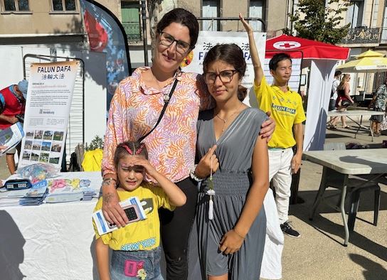 布兰丁(Blandine)觉得展台非常吸引人,她说自己学到了很多东西,对法轮大法有了很深入的了解。她说:“我以前不知道,我会深入了解,然后带着我的女儿们来炼功点学功。” 对于法轮大法学员遭受的迫害,她表示感到震惊和痛心,尤其对那些不伤害他人、只是践行自身传统与文化的人施加迫害。她认为迫害是非人的、愚蠢的,对法轮功学员很残忍。布兰丁签署了G7+7联署请愿书。