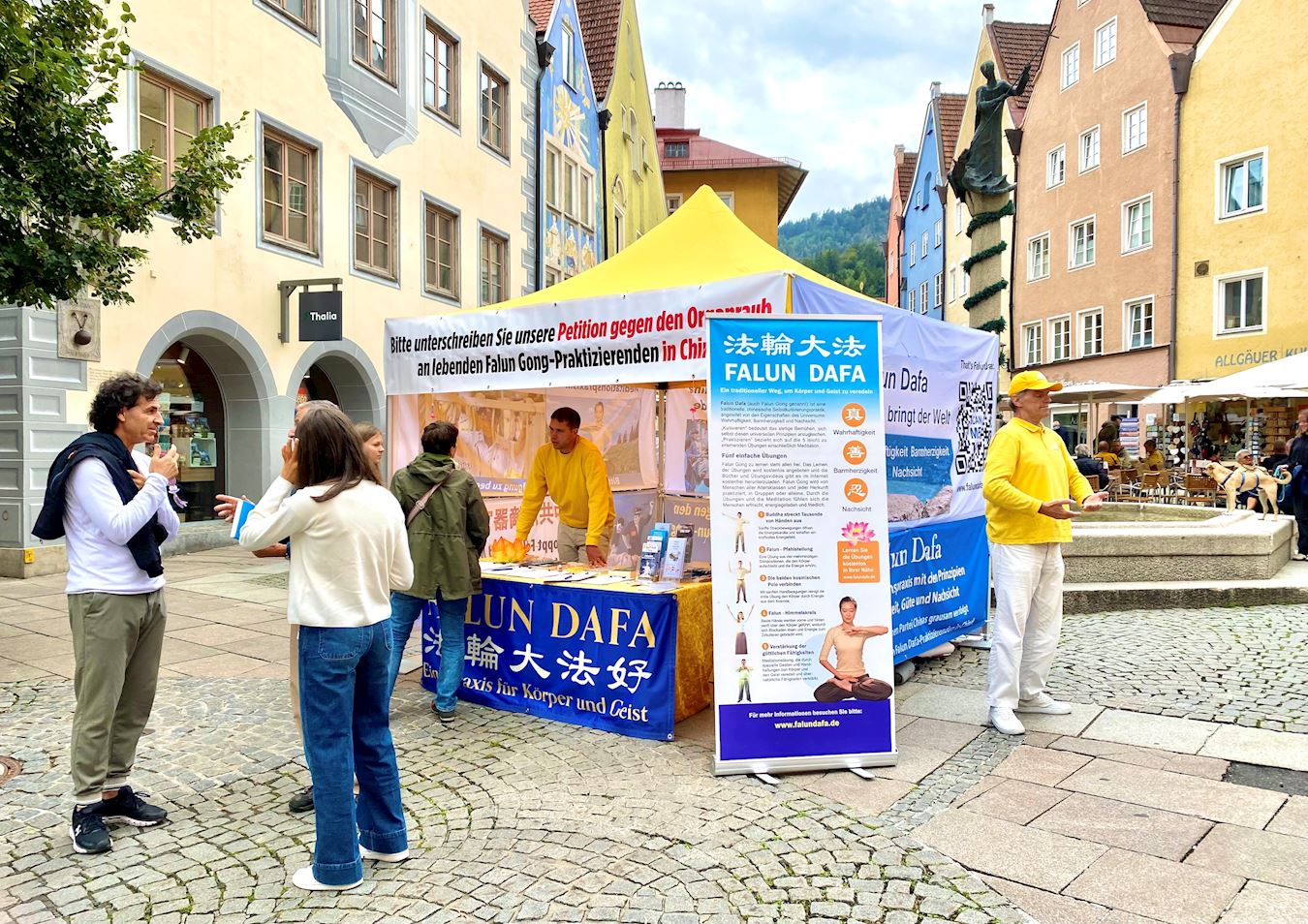 【明慧网二零二五年九月二日】(明慧记者德祥德国菲森报道)“请问,你们在菲森有没有炼功点?”“在哪里可以学炼法轮功?”“你们做的很好,请继续努力。”二零二五年八月二十三日,法轮功学员在德国菲森(Füssen)举办了信息日活动,吸引了很多当地人与游客的关注。