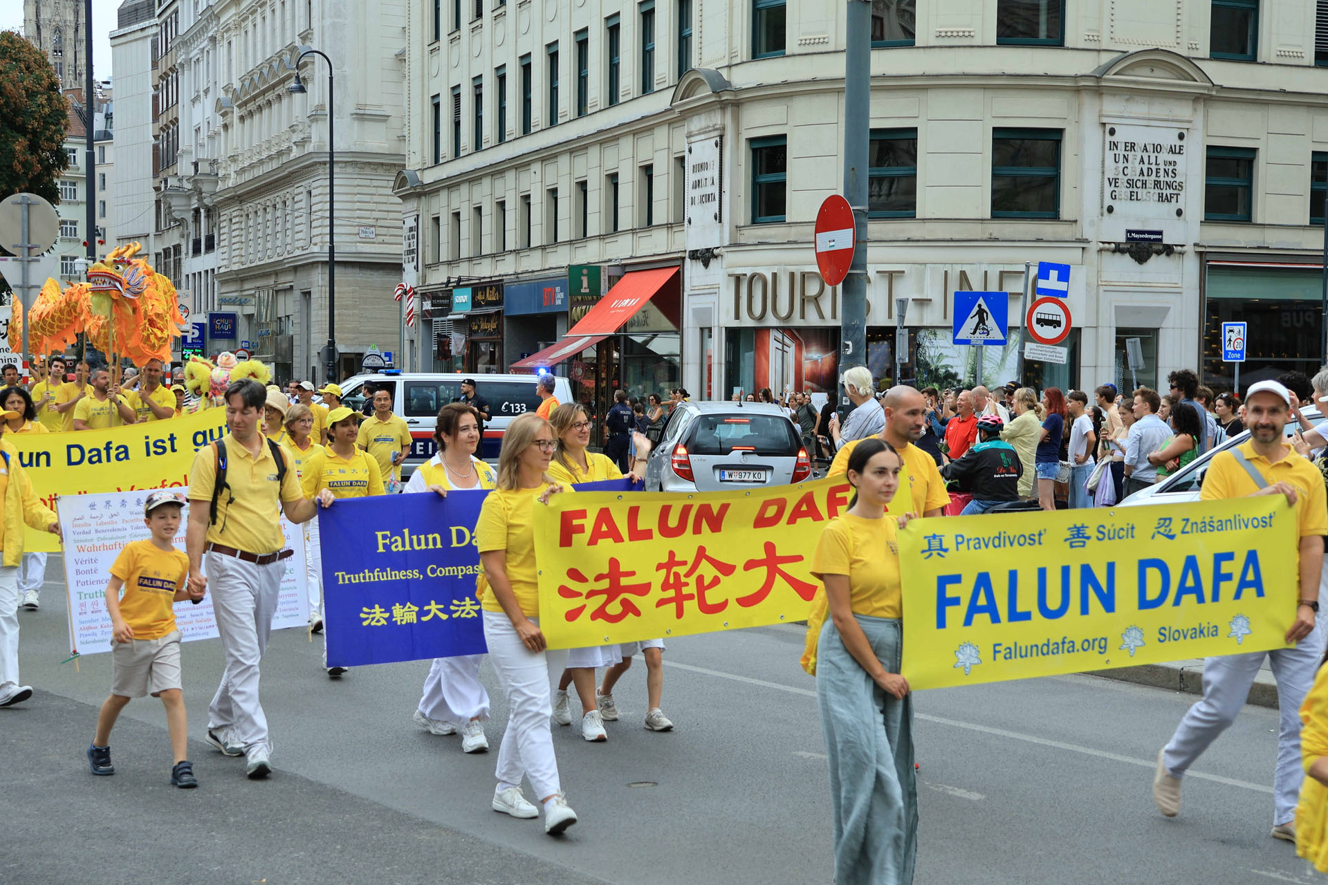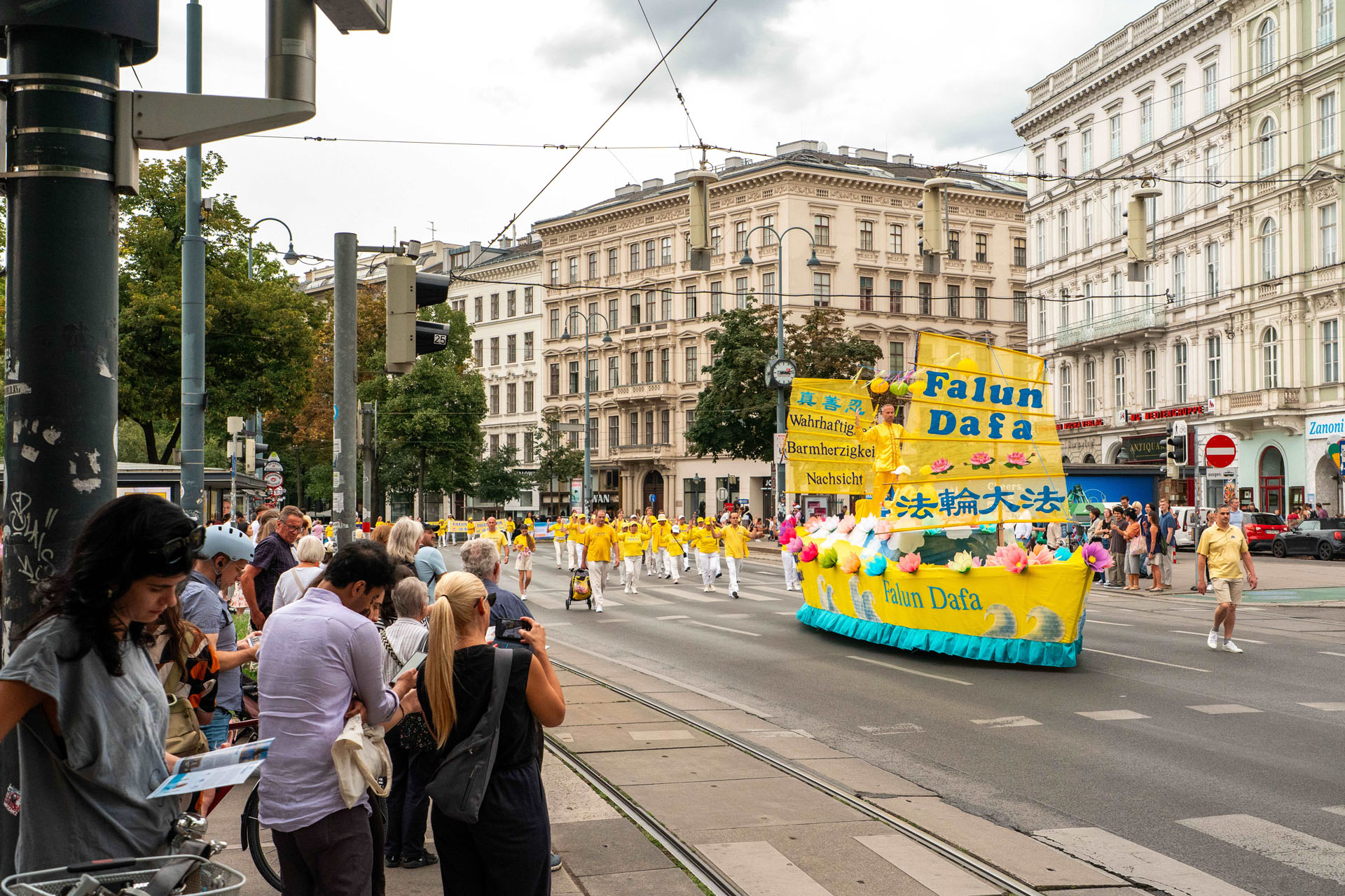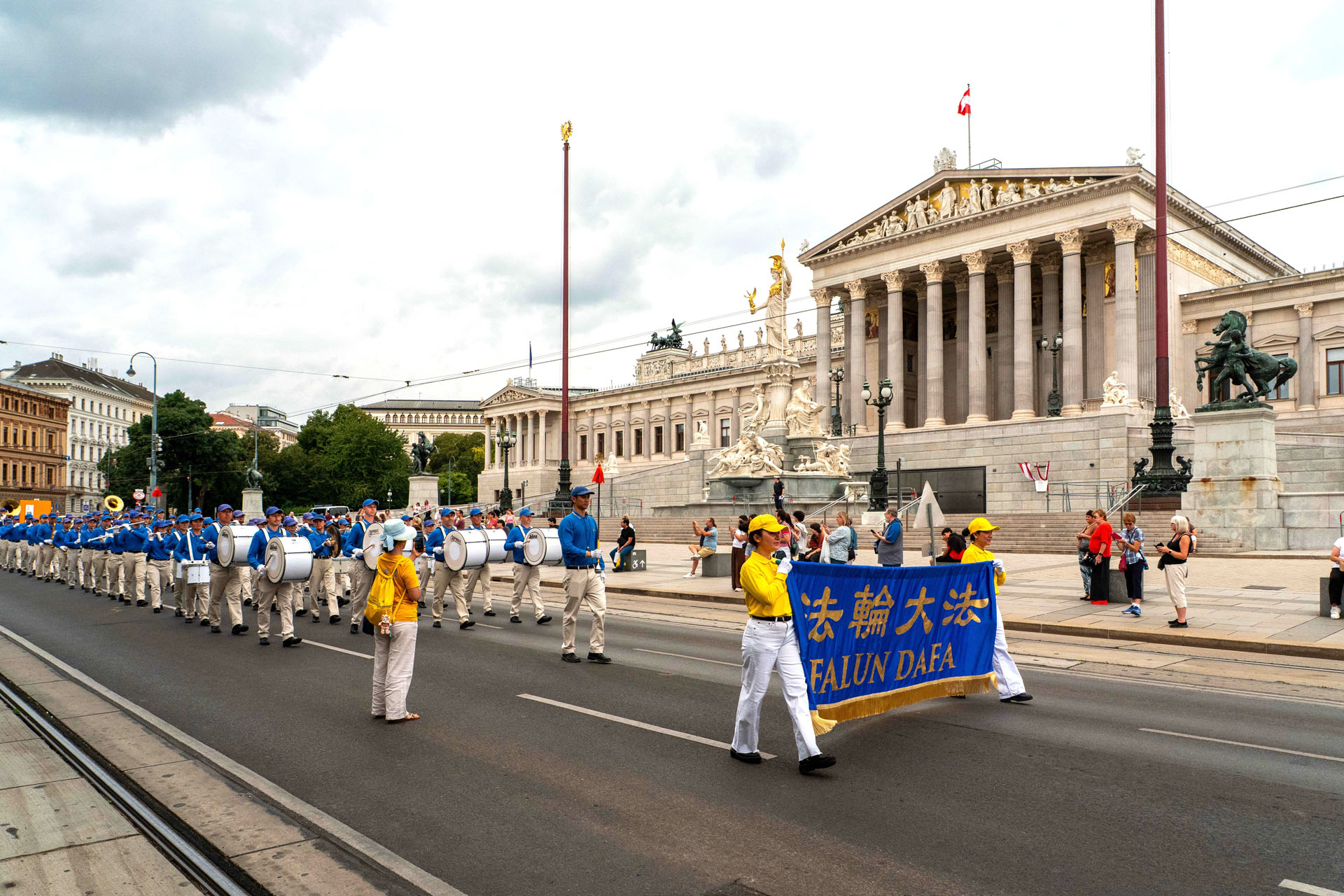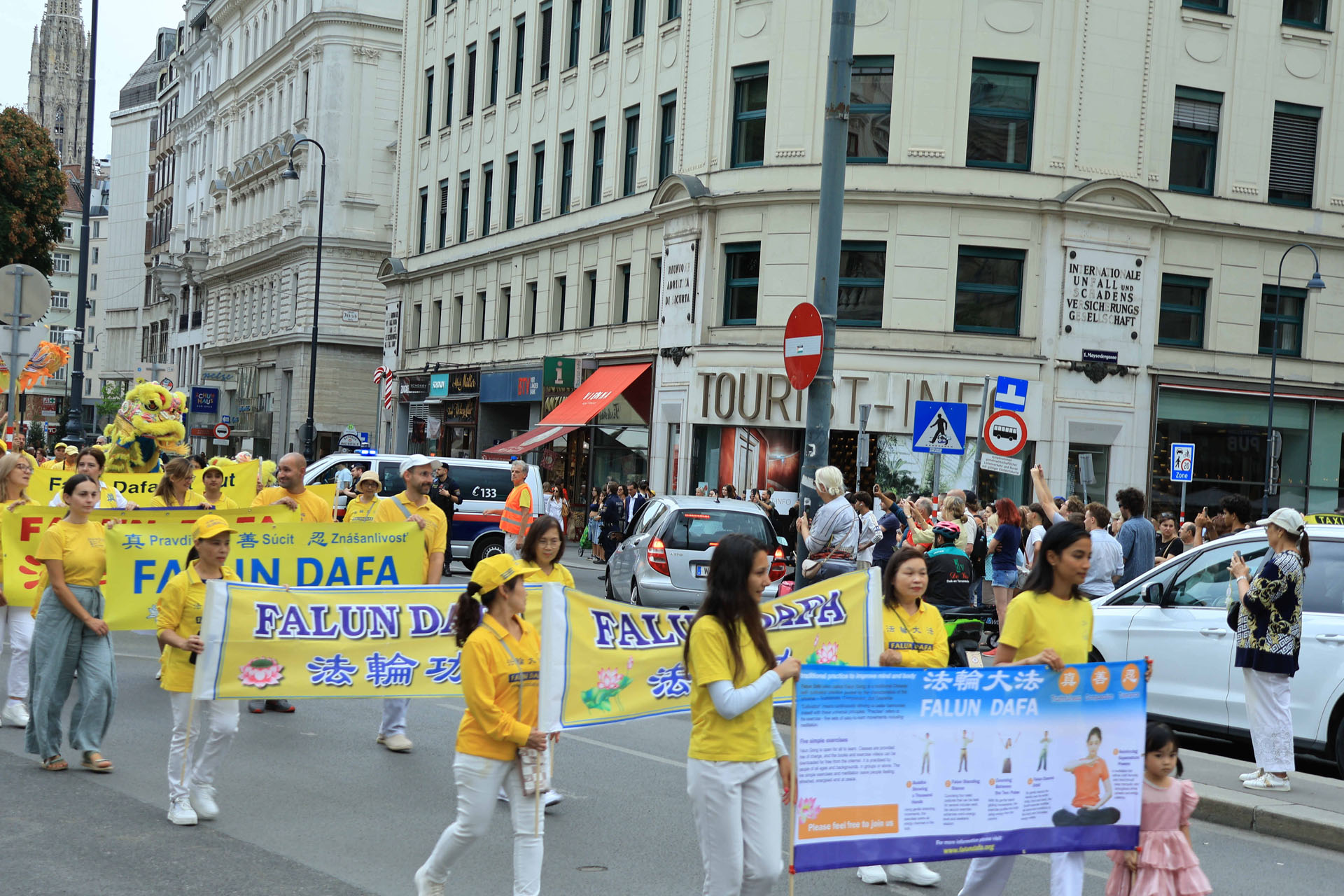 【明慧网二零二五年九月二日】(明慧记者高思羽奥地利维也纳报道)“演奏的音乐振奋人心,令人愉悦。”“游行编排得很好,我立即拿出了相机。”“游行非常丰富多彩,传递的讯息也非常好。”“这是我第一次欣赏示威游行活动,这是我见过的真正具有价值的游行,具有明确的诉求。我们需要这样的行动,尤其在当今。所传递的价值观至关重要。”二零二五年八月三十日,在奥地利首都维也纳市中心,人们看到法轮功学员的游行队伍后纷纷赞叹。