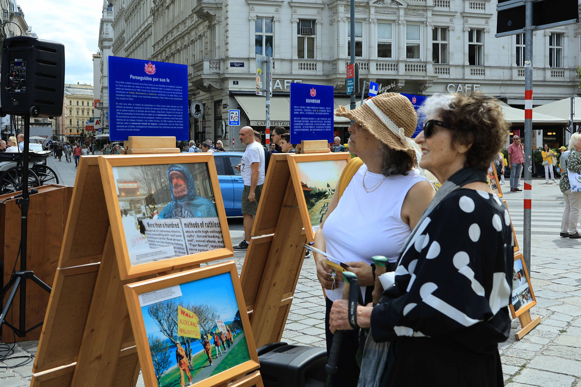 她从波兰移居维也纳已经四十年,但曾经的经历让她明白迫害的严重:“我来自一个共产主义国家,在波兰也经历过这种情况。虽然不象你们(中国)那里那么严重,但我还是能理解。”她缓缓说道:“没有人看到他们(法轮功学员)承受的痛苦,没有人为他们发声,政界虽然知道,但却保持沉默。”但看到活动现场,她略感到欣慰的说:“在这里他们能自由地发声。”