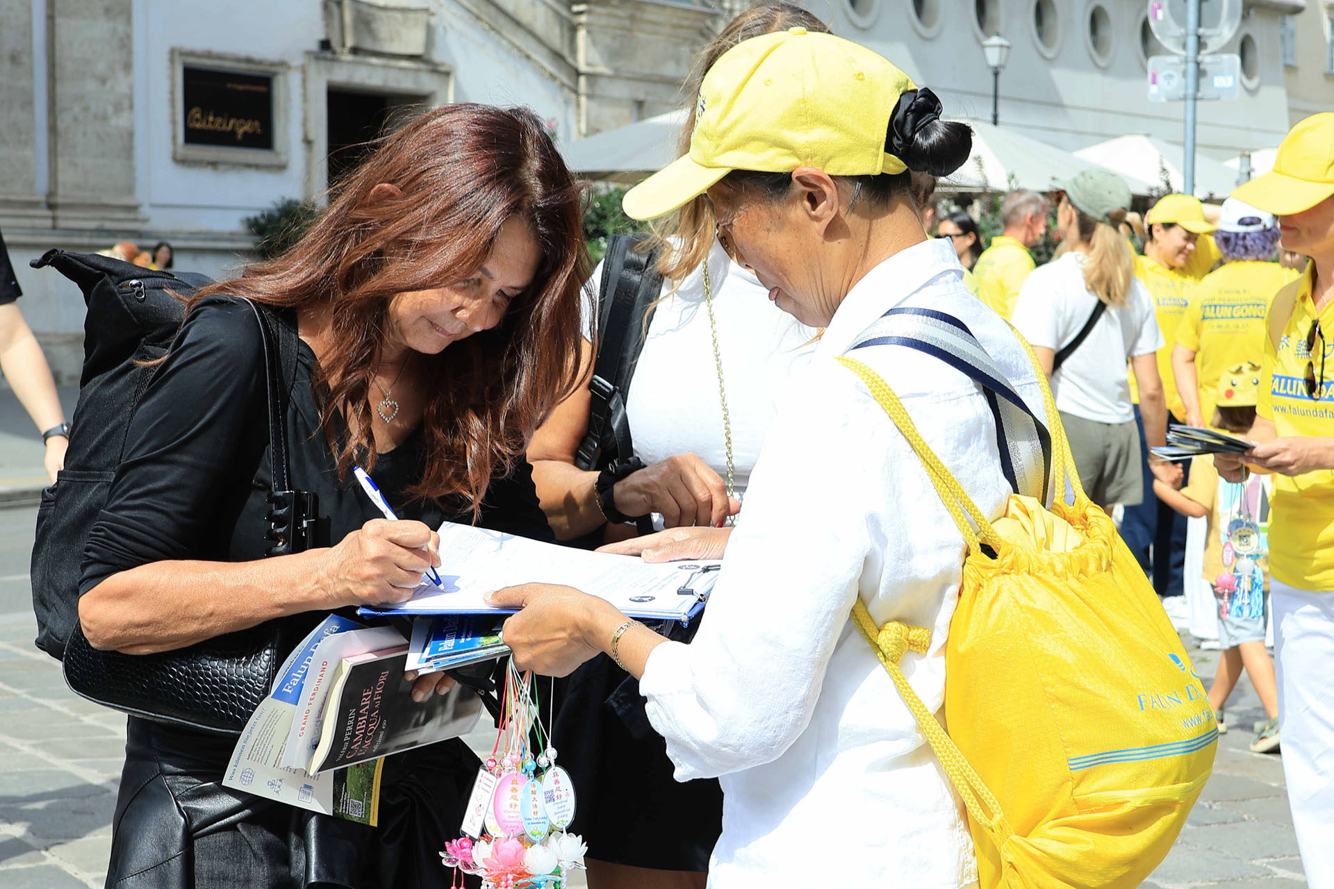 在金融业工作的乌克兰女孩尼奥妮拉(Neonila)和从事物流工作西班牙女孩玛丽亚娜(Mariana)目前都在维也纳工作,游行活动给她们留下了深刻的印象。“我深受震撼。我觉得这是非常好的活动,游行也相当精彩。举办这类活动意义重大,因为我个人从中知晓了许多新的讯息,有些甚至令人心惊。”尼奥妮拉接着说道:“那专注内心的健康及平和的功法,却遭到禁止,甚至被迫害,这实在让人感到可怕。让更多人知晓这一切尤为重要,特别在我们年轻人这一代。”